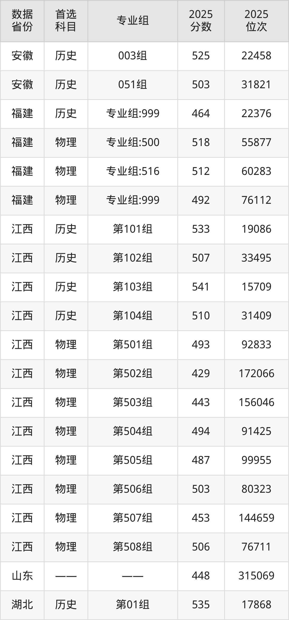 江西:历史组507分、物理组429分;