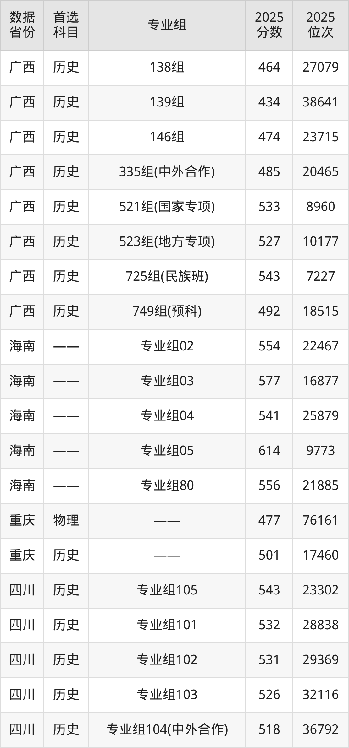 下面是广西民族大学各省最低分汇总,各专业组录取分数线可参考下方图片: