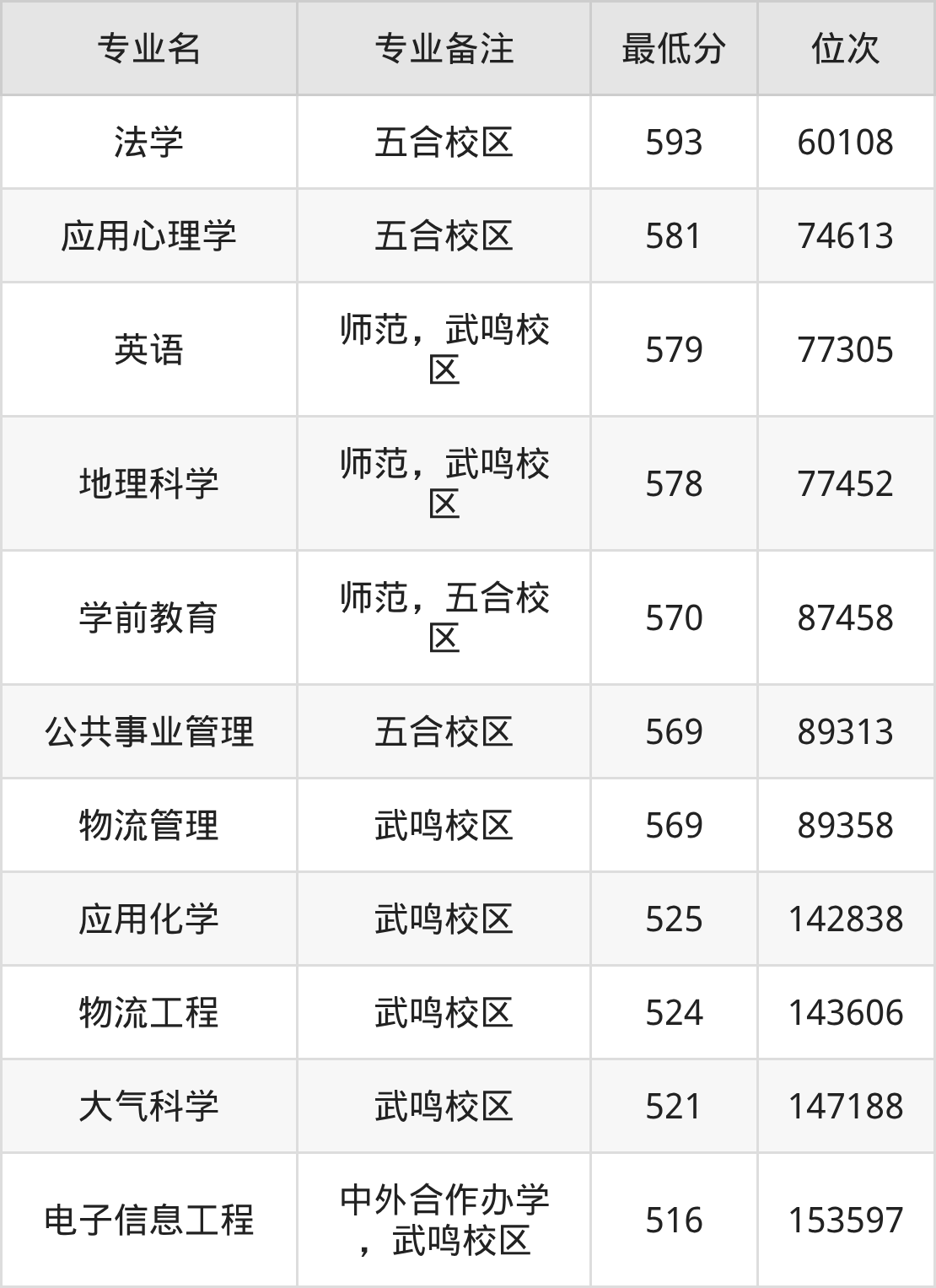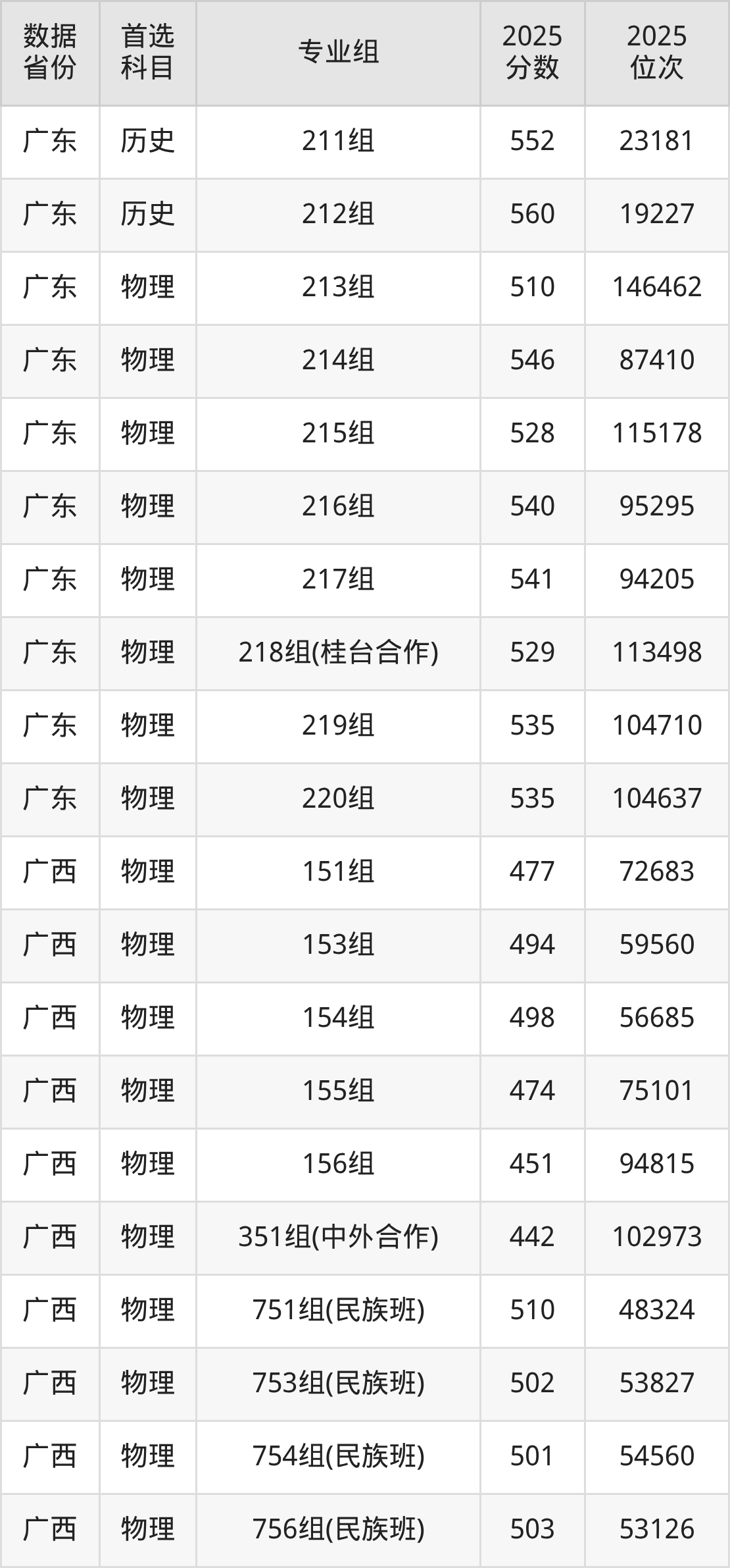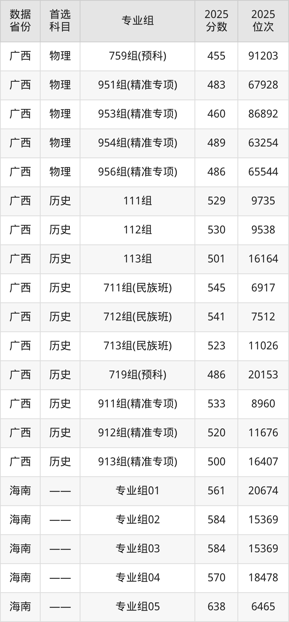 下面是南宁师范大学各省最低分汇总,各专业组录取分数线可参考下方图片: