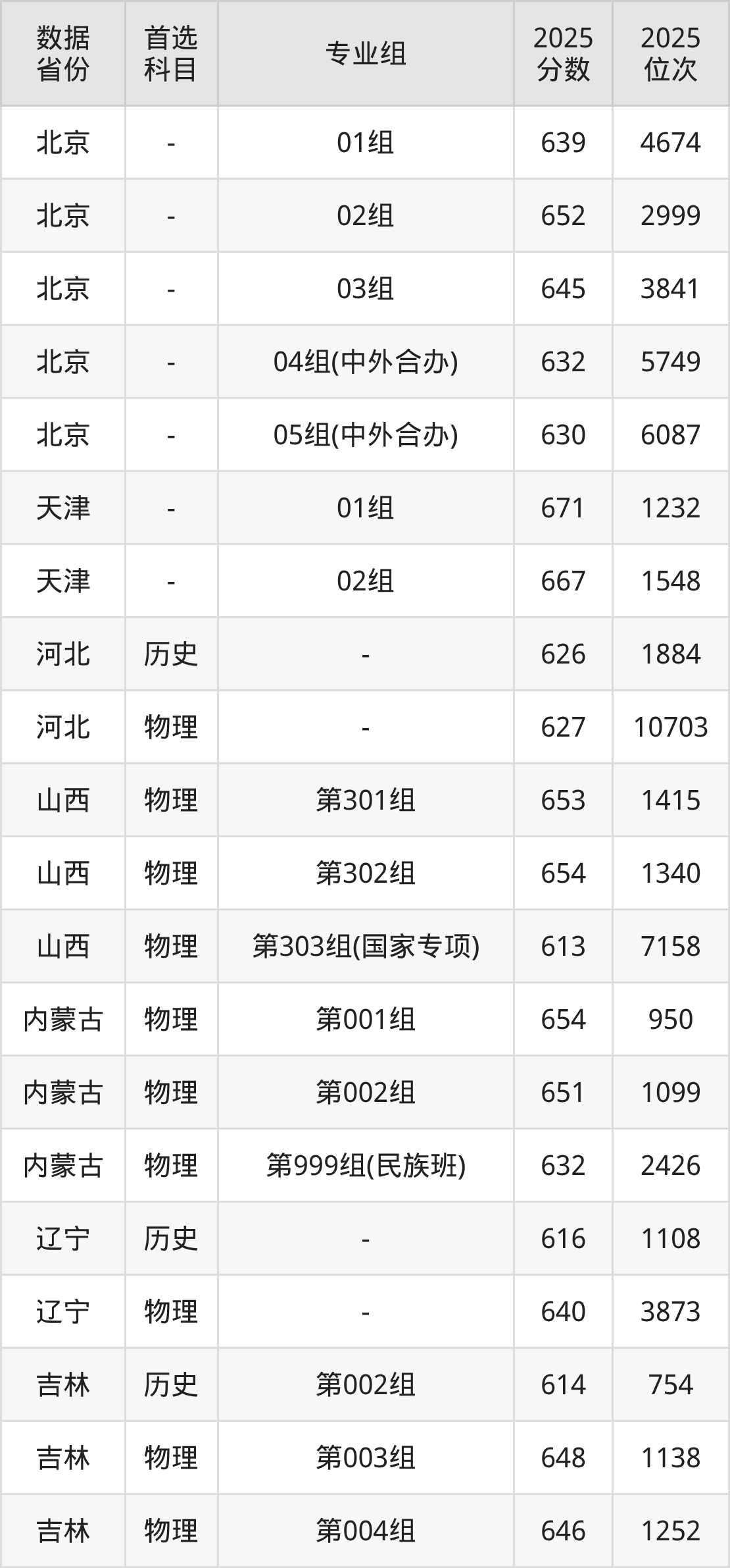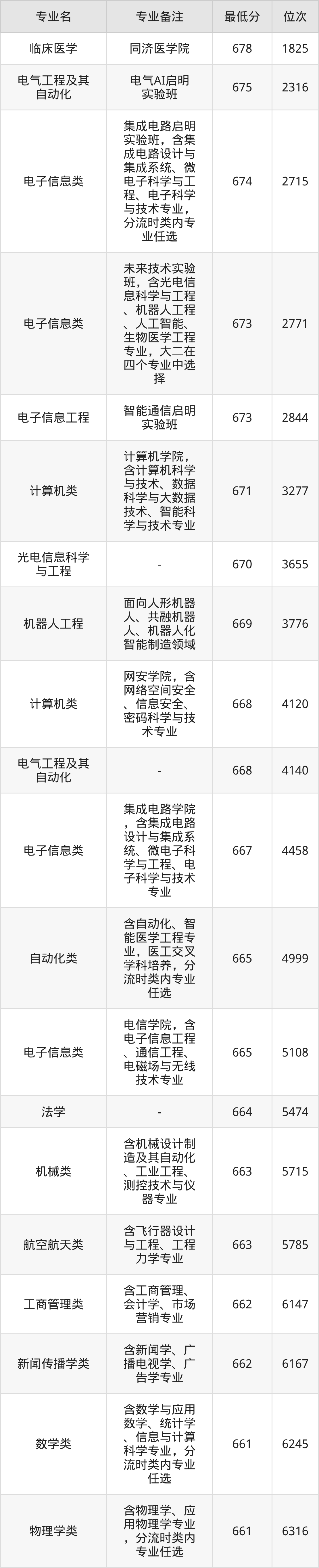 4、电子信息类(未来技术实验班):673分、位次2771名;