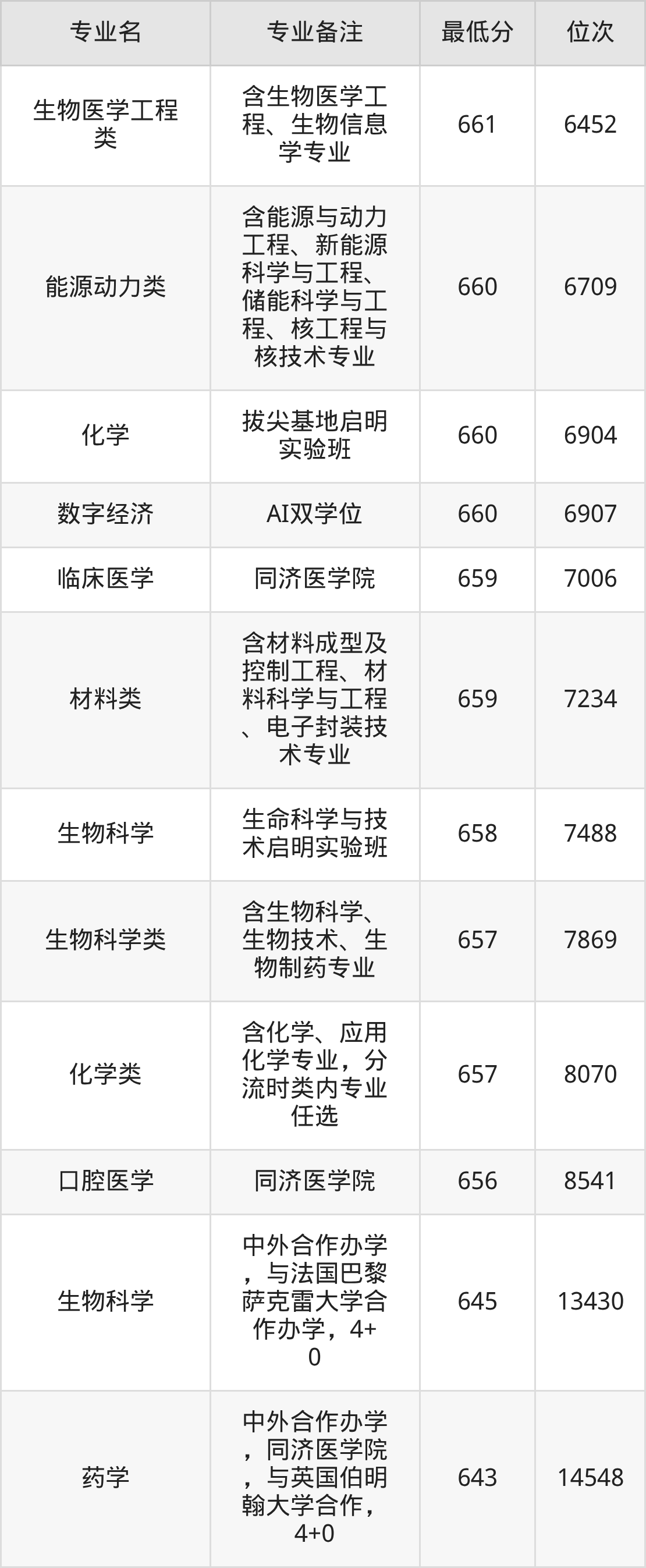 | 物理 | 生物医学工程 | 医工交叉启明 实验班 | 4 |
