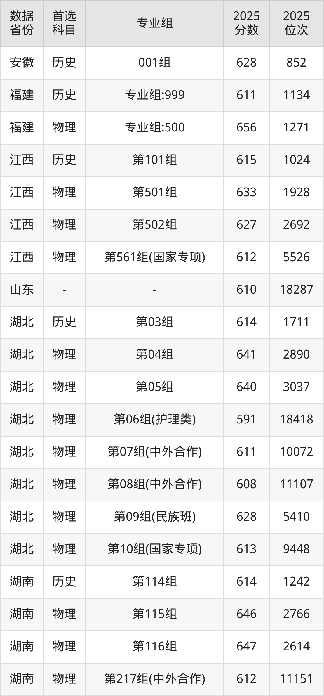 下面是华中科技大学各省最低分汇总,各专业组录取分数线可参考下方图片:
