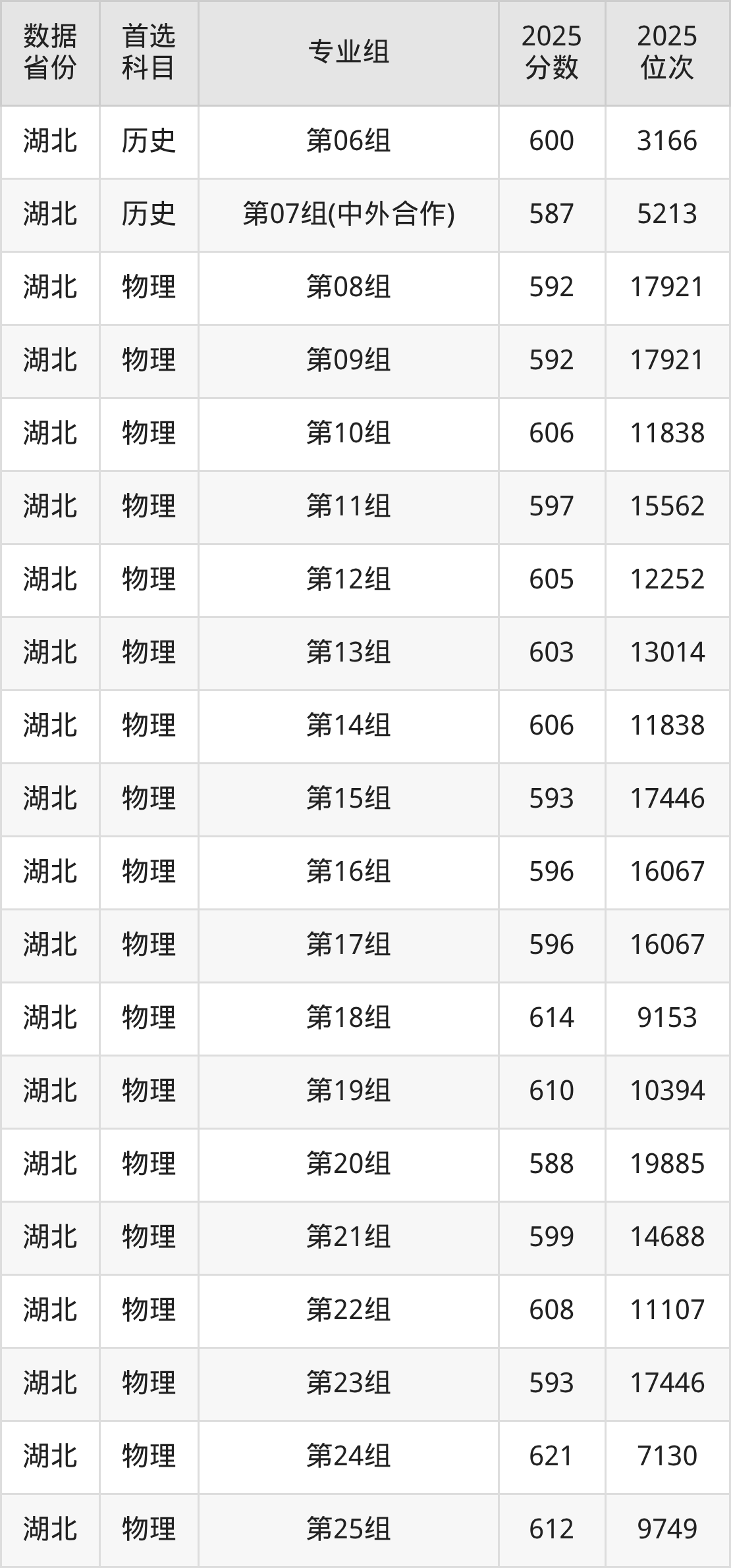 湖北:历史组587分、物理组576分;
