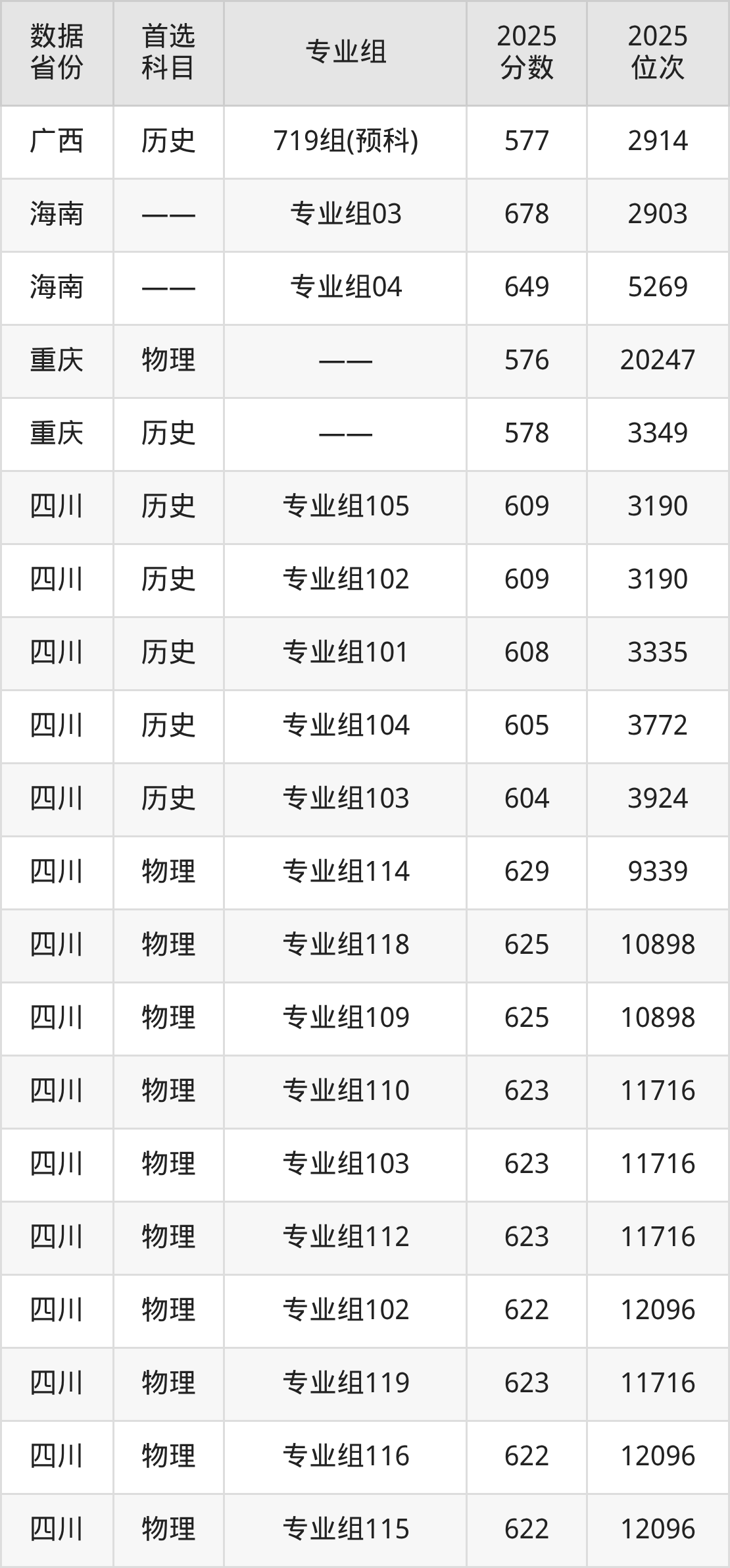 四川:历史组604分、物理组600分;