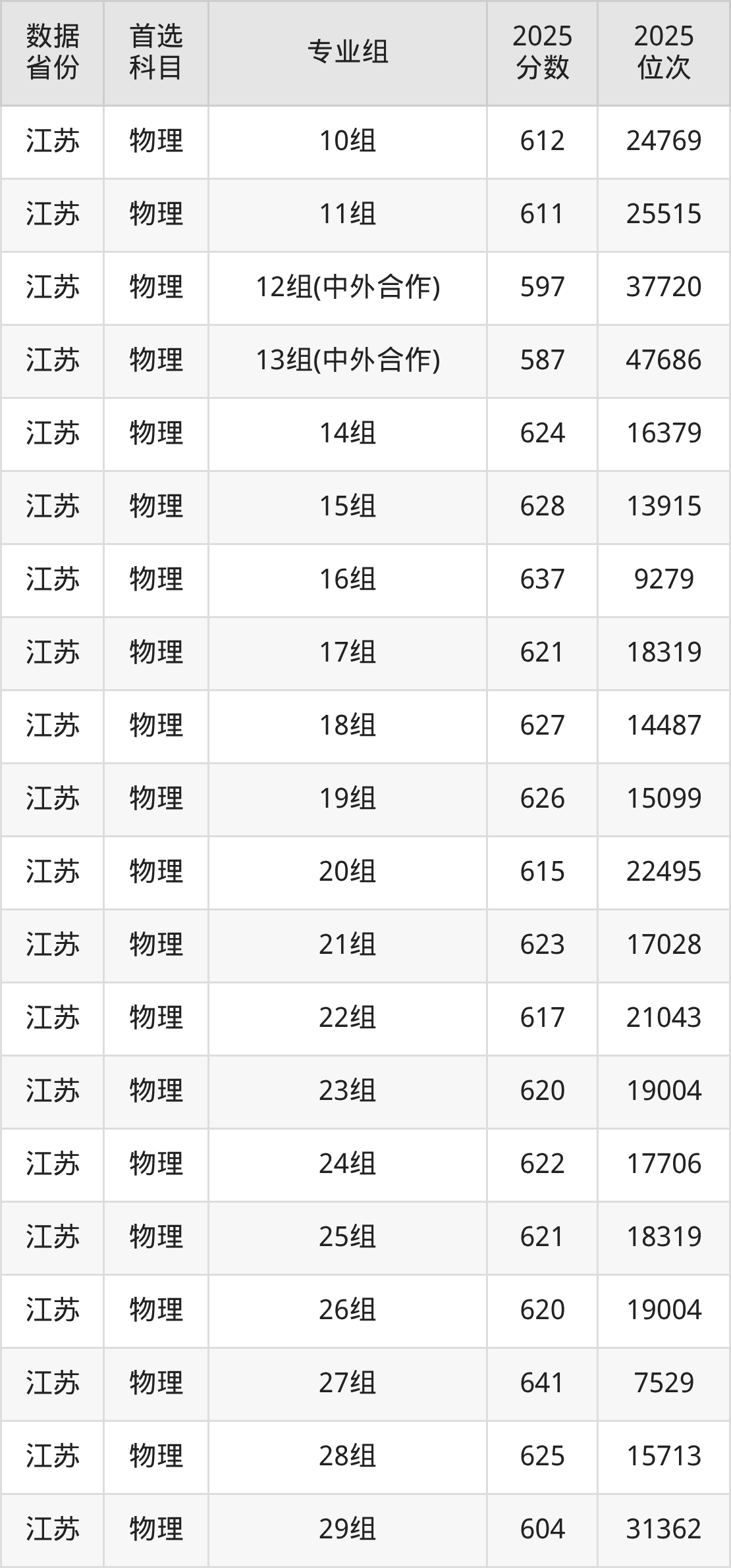 | 物理 | 机器人工程 | 江阴校区 | 17 |