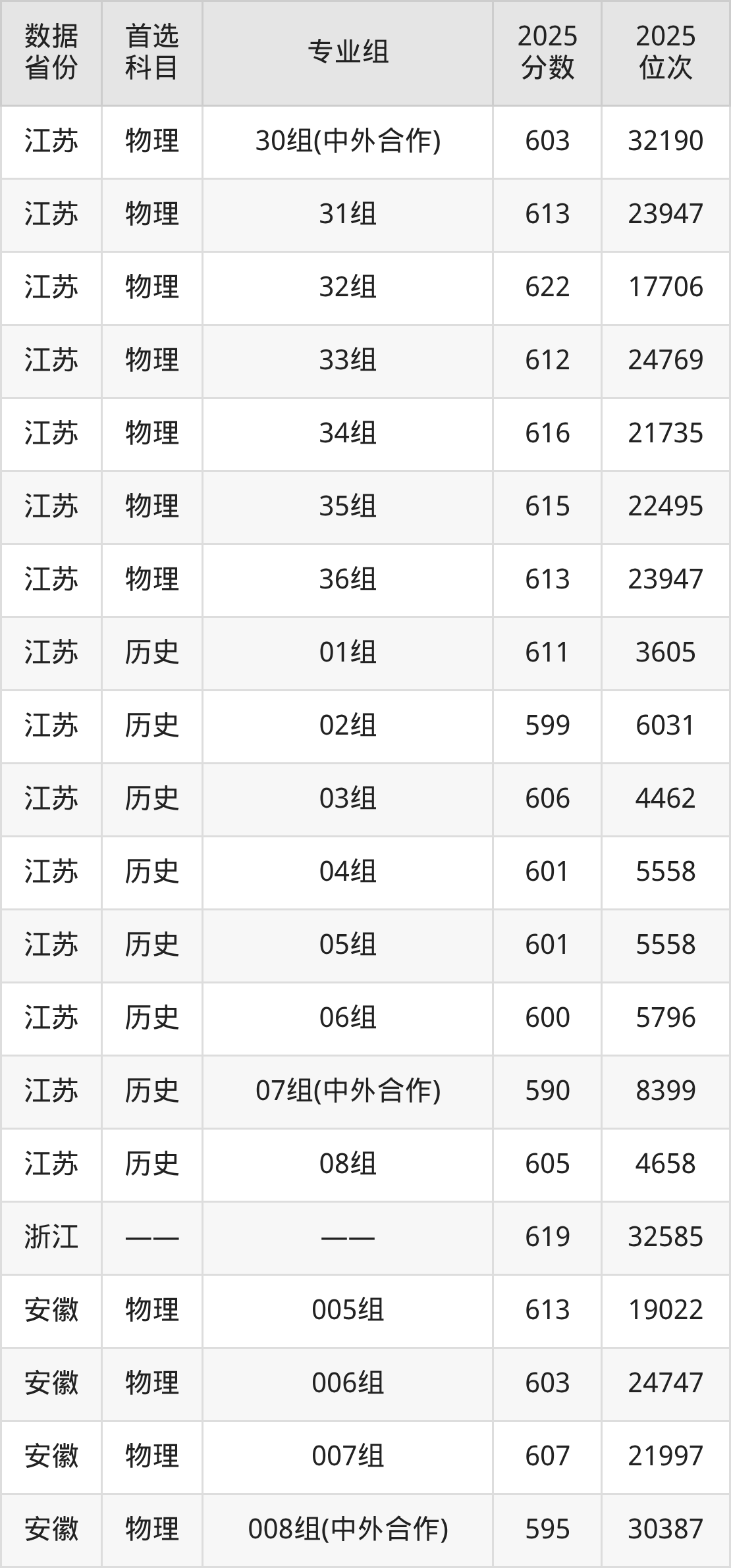 下面是江南大学各省最低分汇总,各专业组录取分数线可参考下方图片: