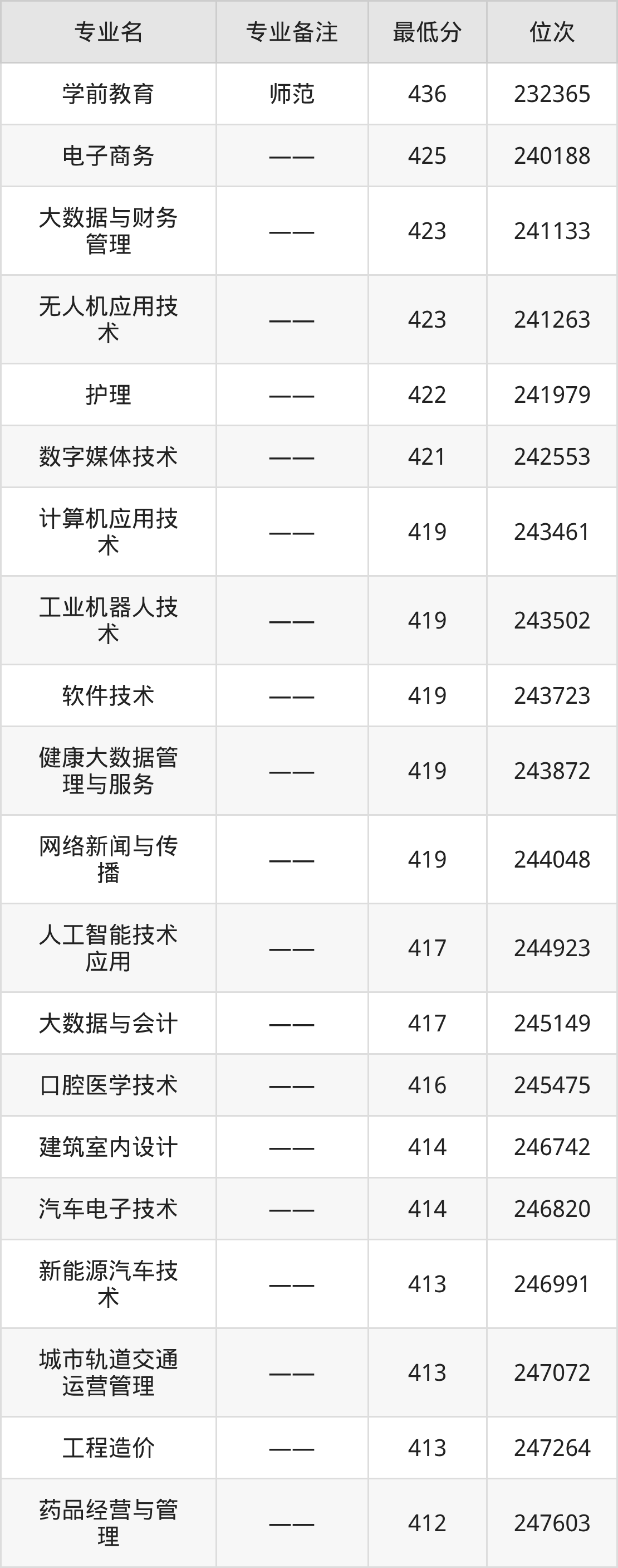 4、无人机应用技术:423分、位次241263名;