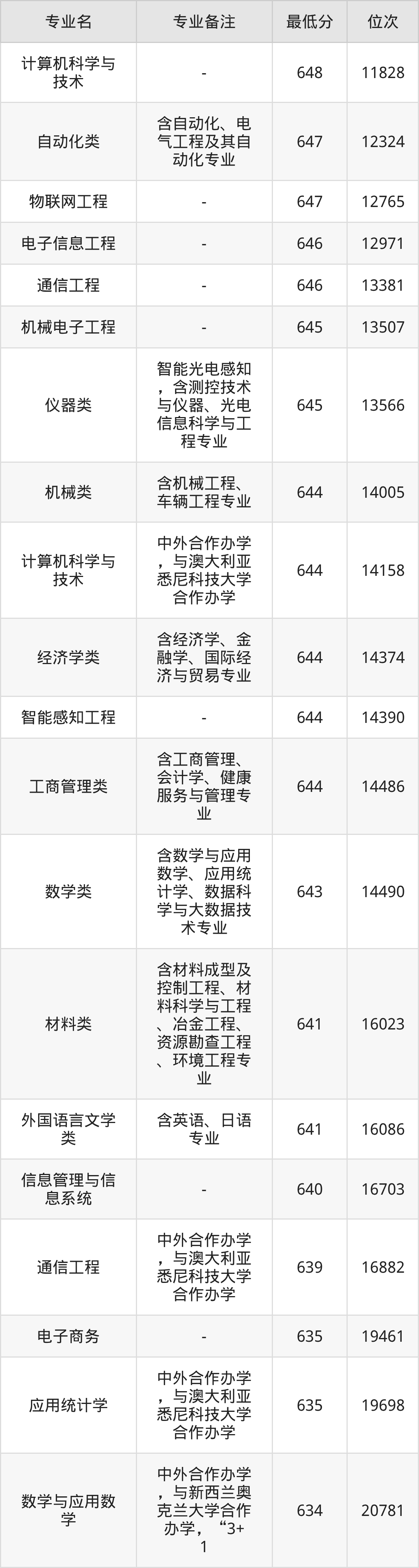1、计算机科学与技术:648分、位次11828名;
