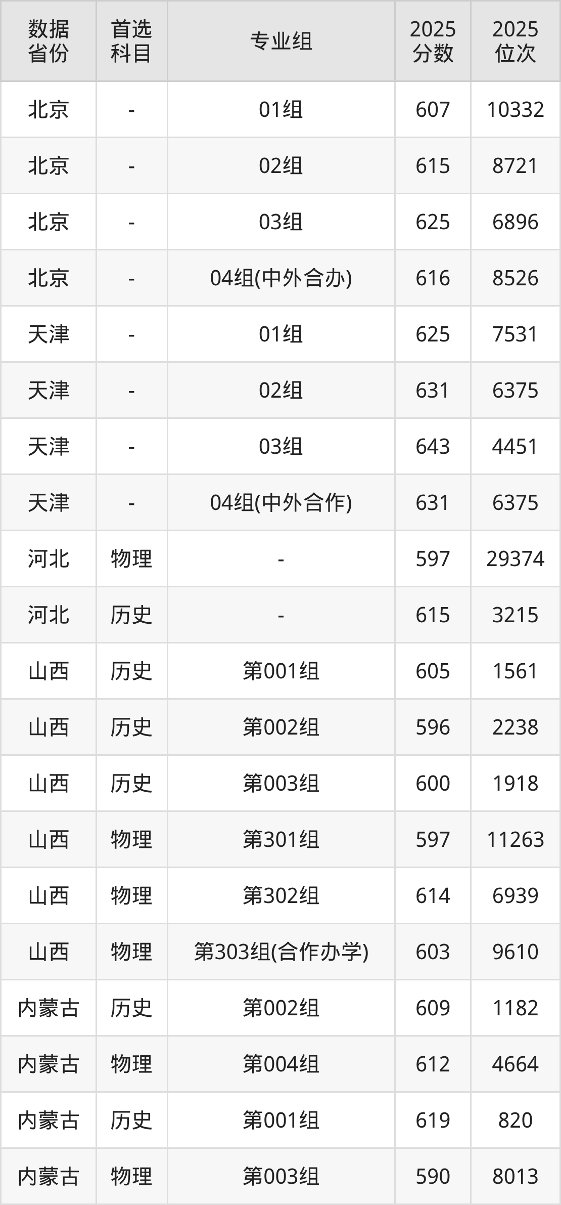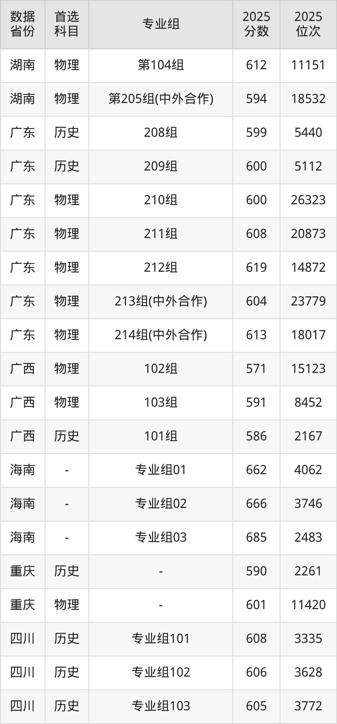 | 物理 | 计算机科学与 技术 | 中外合作办学 | 25 |