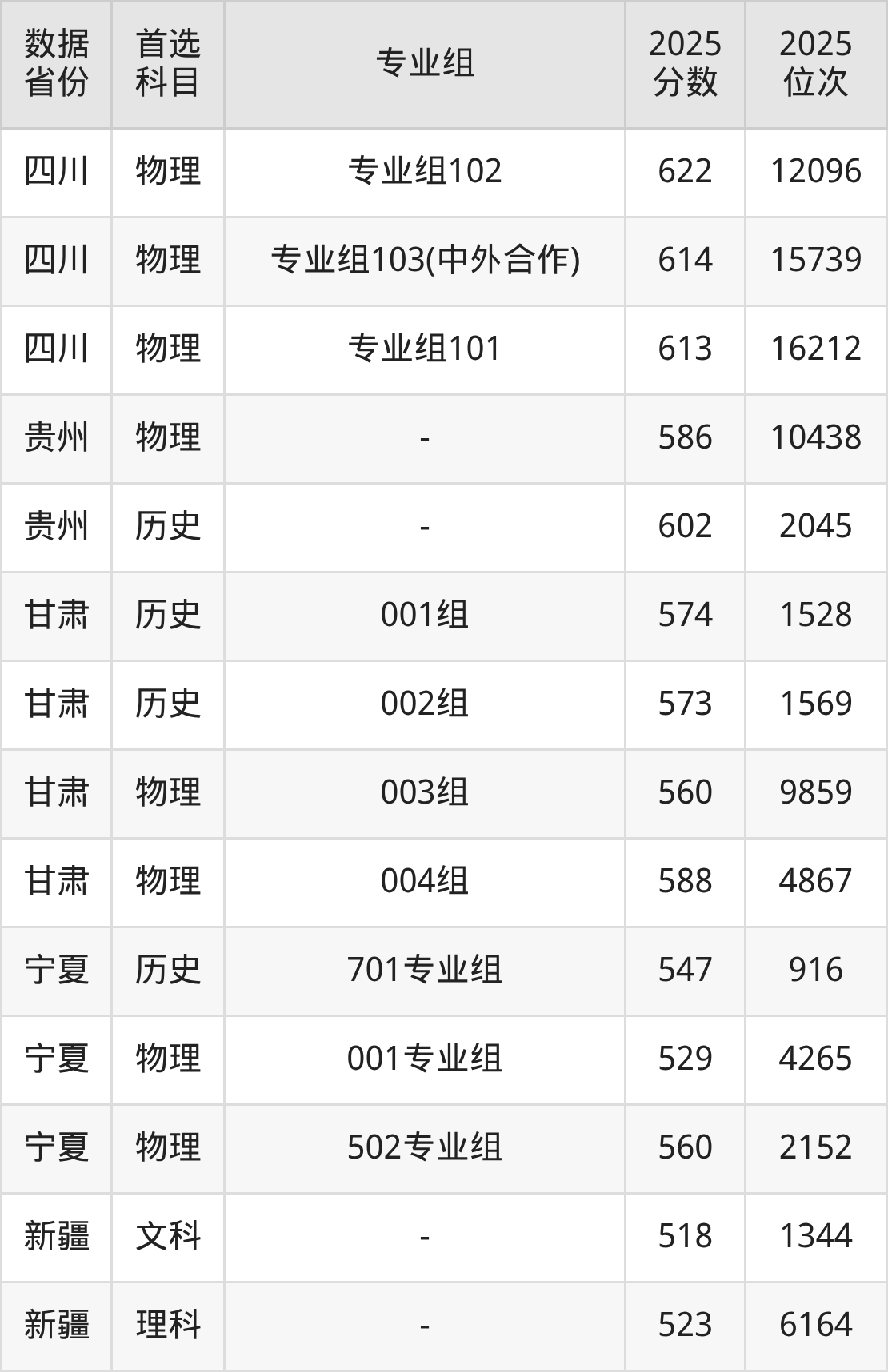 甘肃:历史组573分、物理组560分;