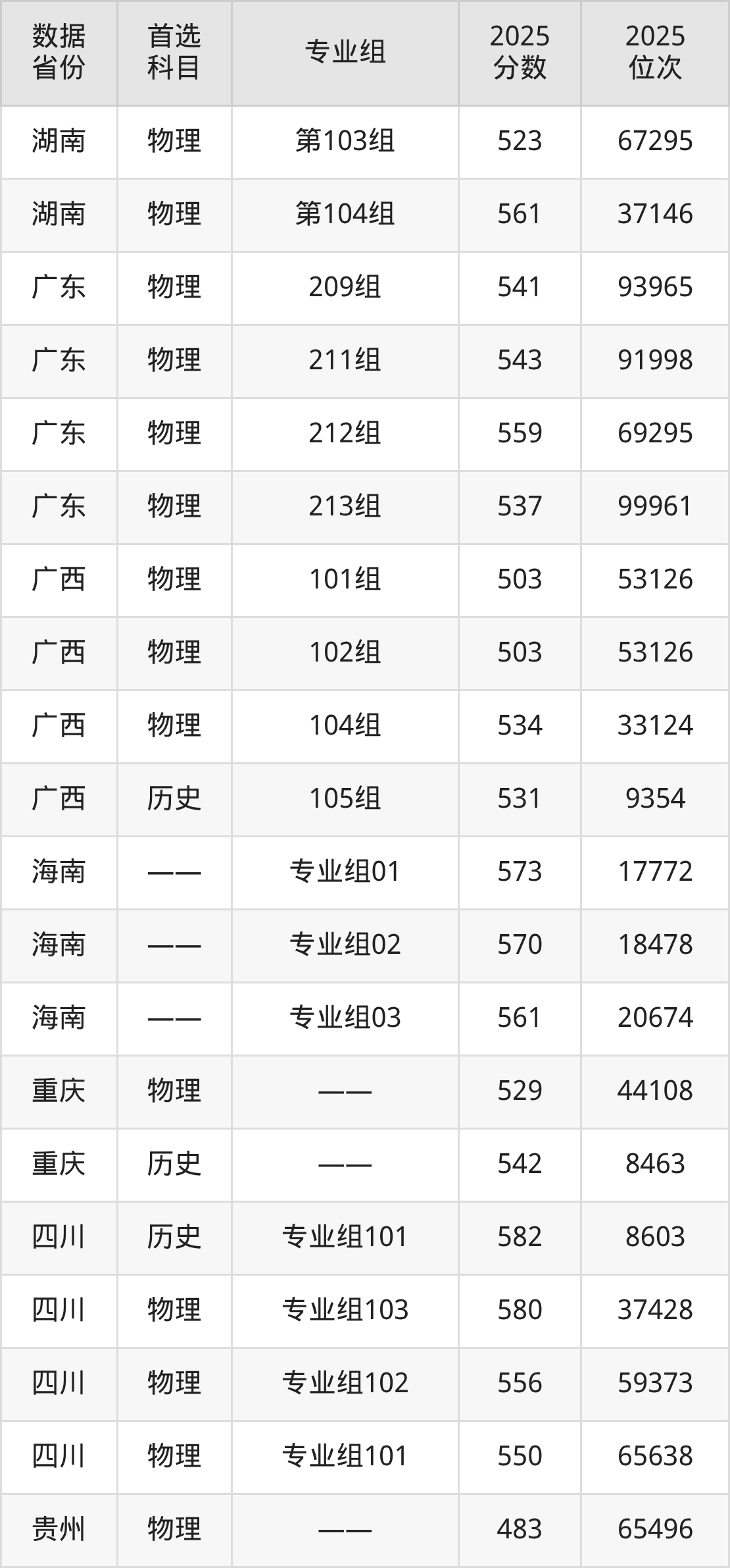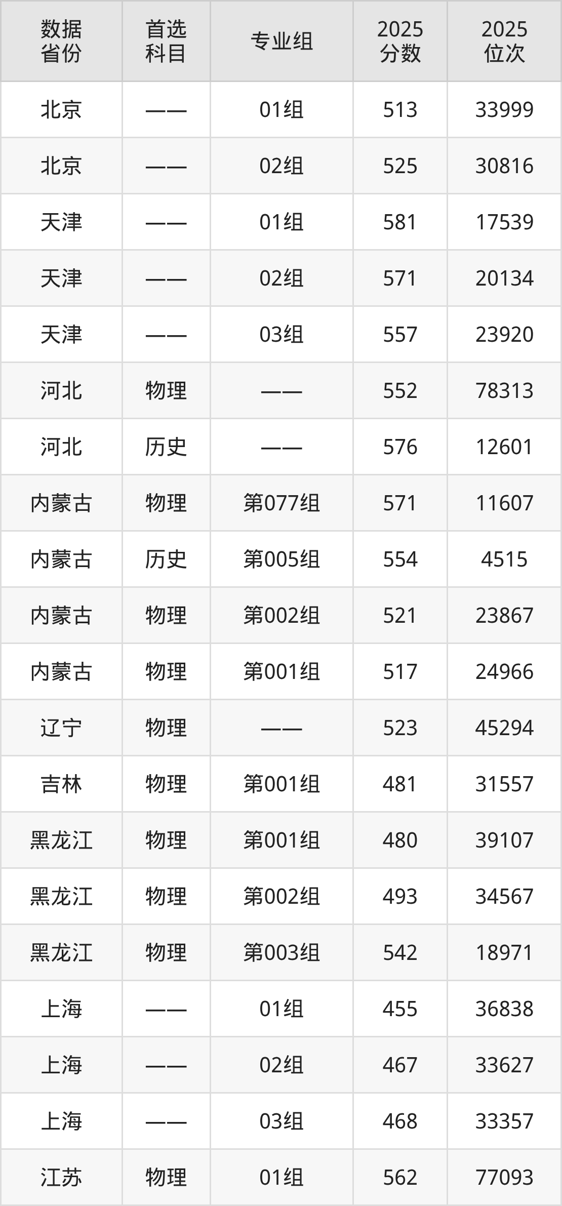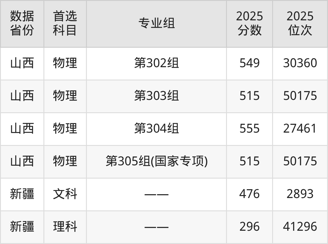 2025年石河子大学全国录取分数线最低是296分,最高是605分,平均分在534分左右。在多数地区录取最低分均超过460分。低于460分能上的地区只有上海、宁夏和新疆,高于平均值较多的是河南、四川、河北和湖北等地,均有专业组最低分在574分及以上。