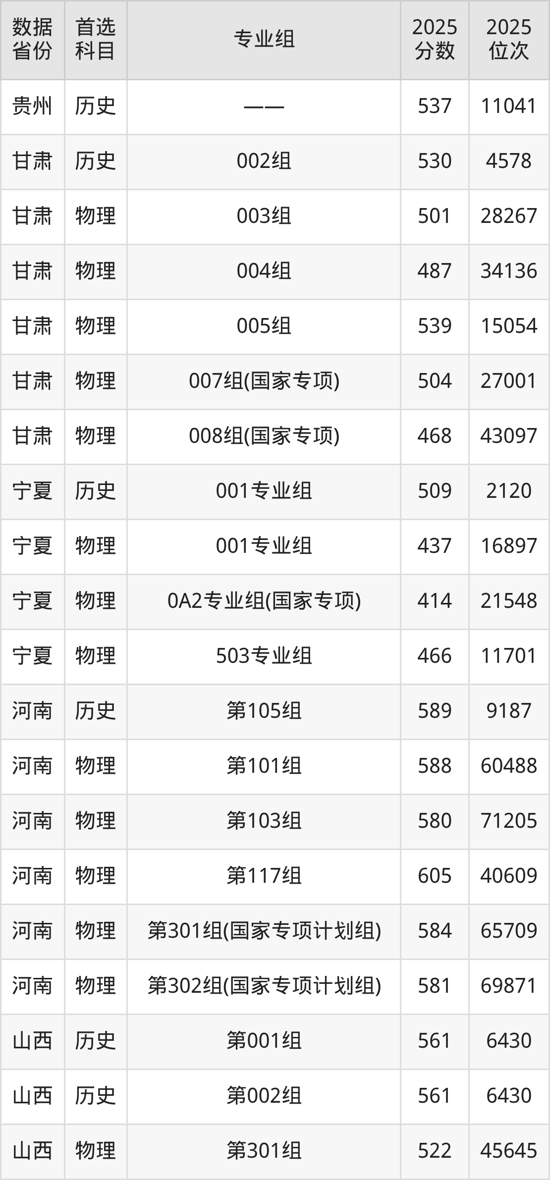 下面是石河子大学各省最低分汇总,各专业组录取分数线可参考下方图片: