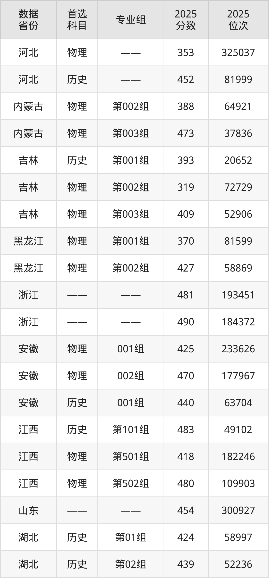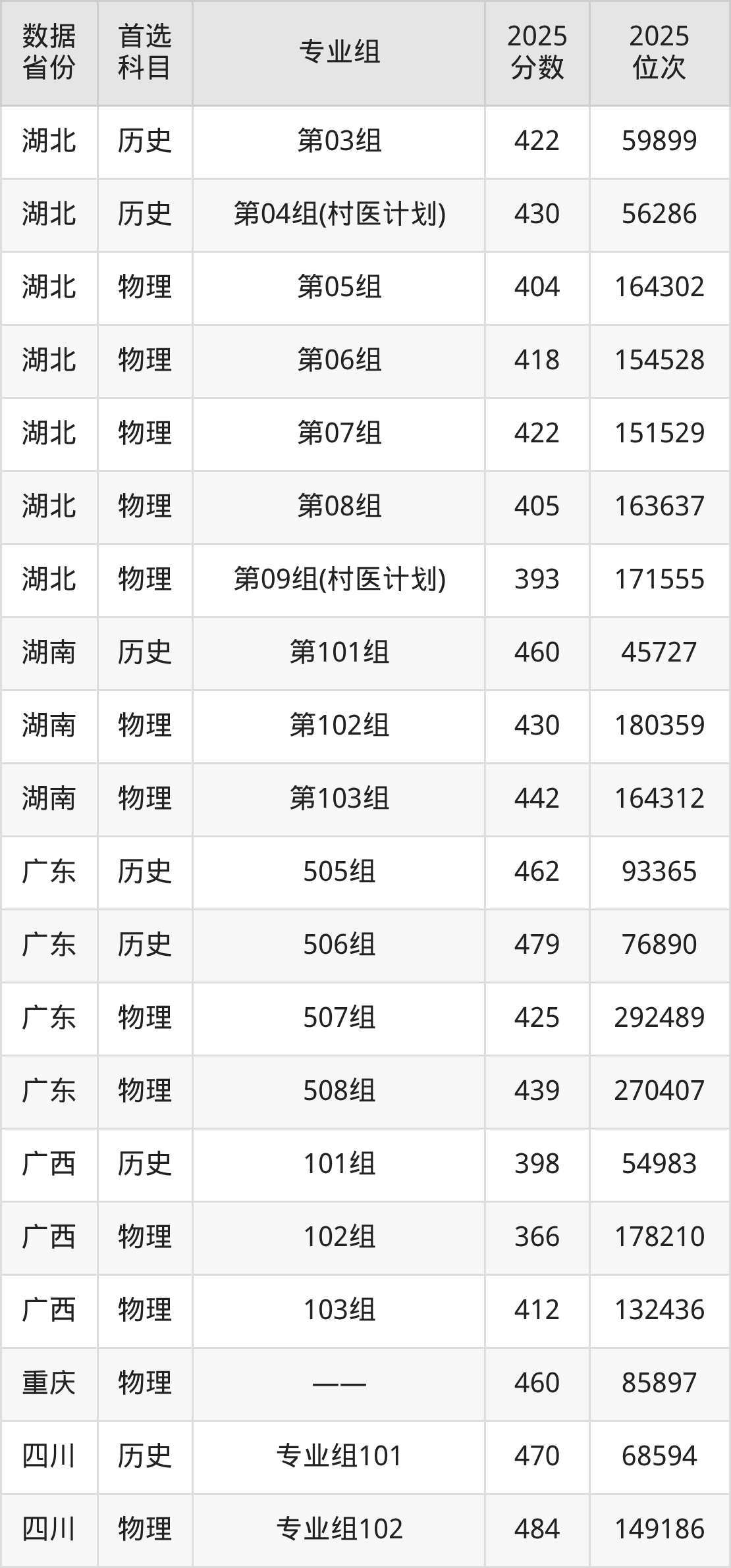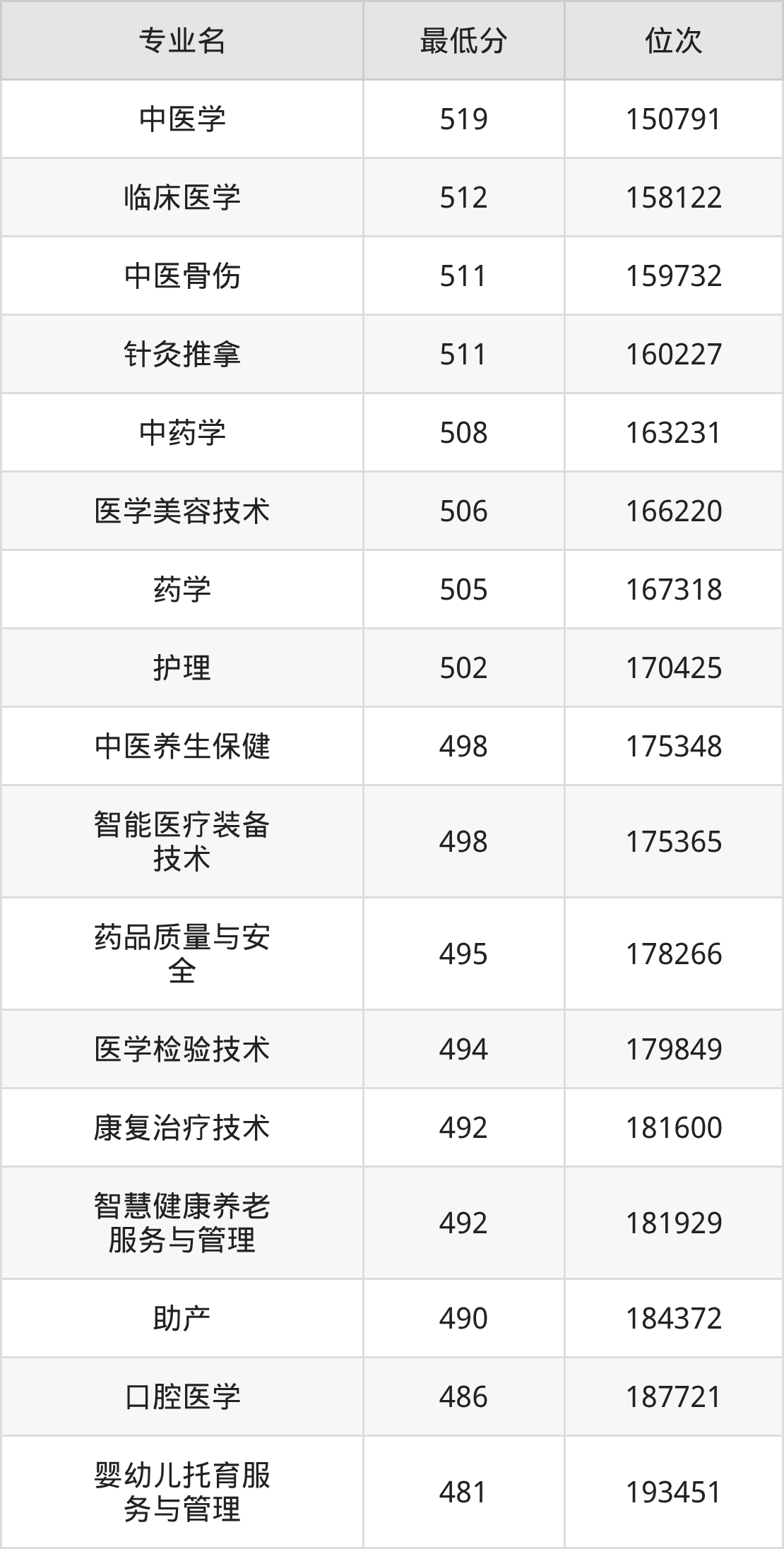 下面是湖北中医药高等专科学校各省最低分汇总,各专业组录取分数线可参考下方图片: