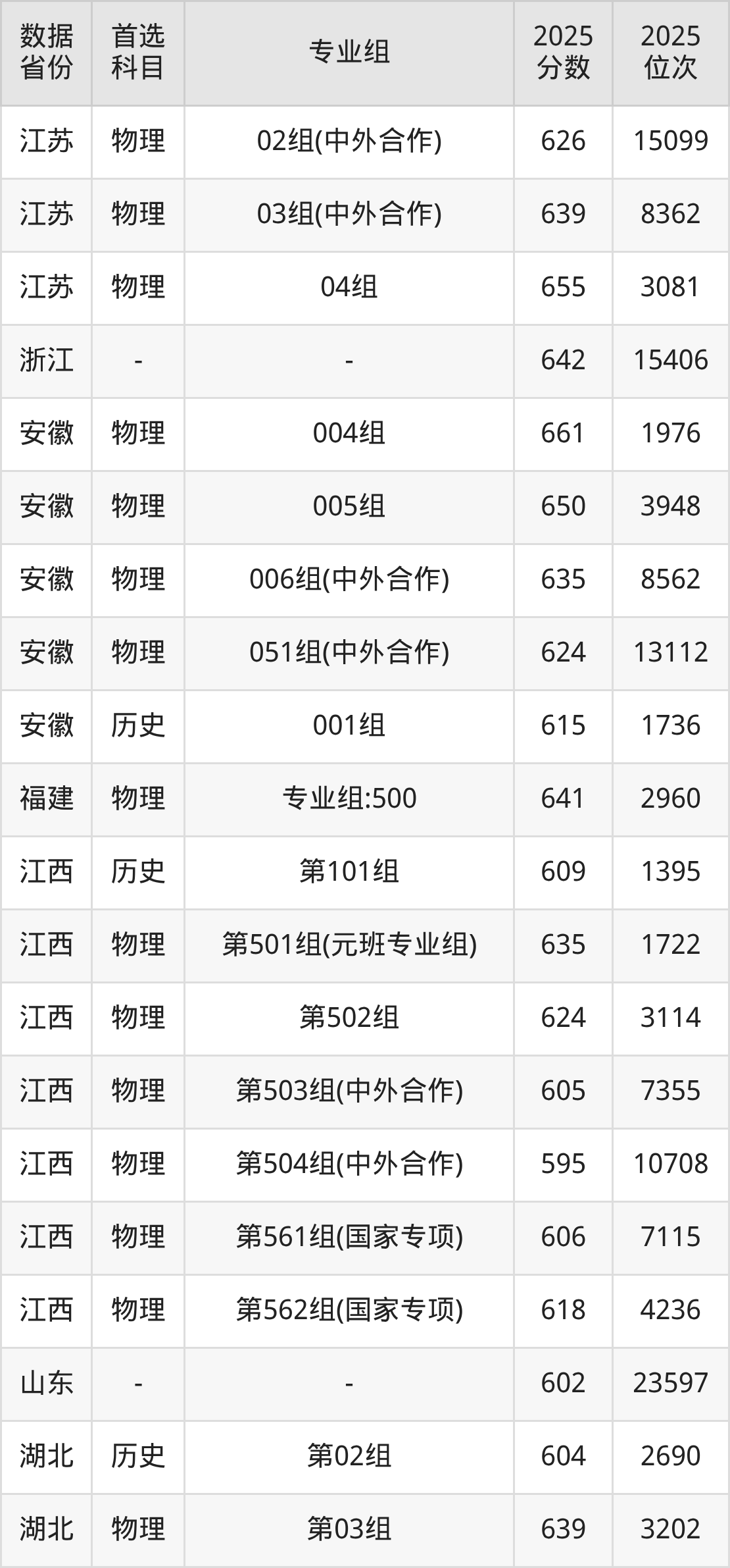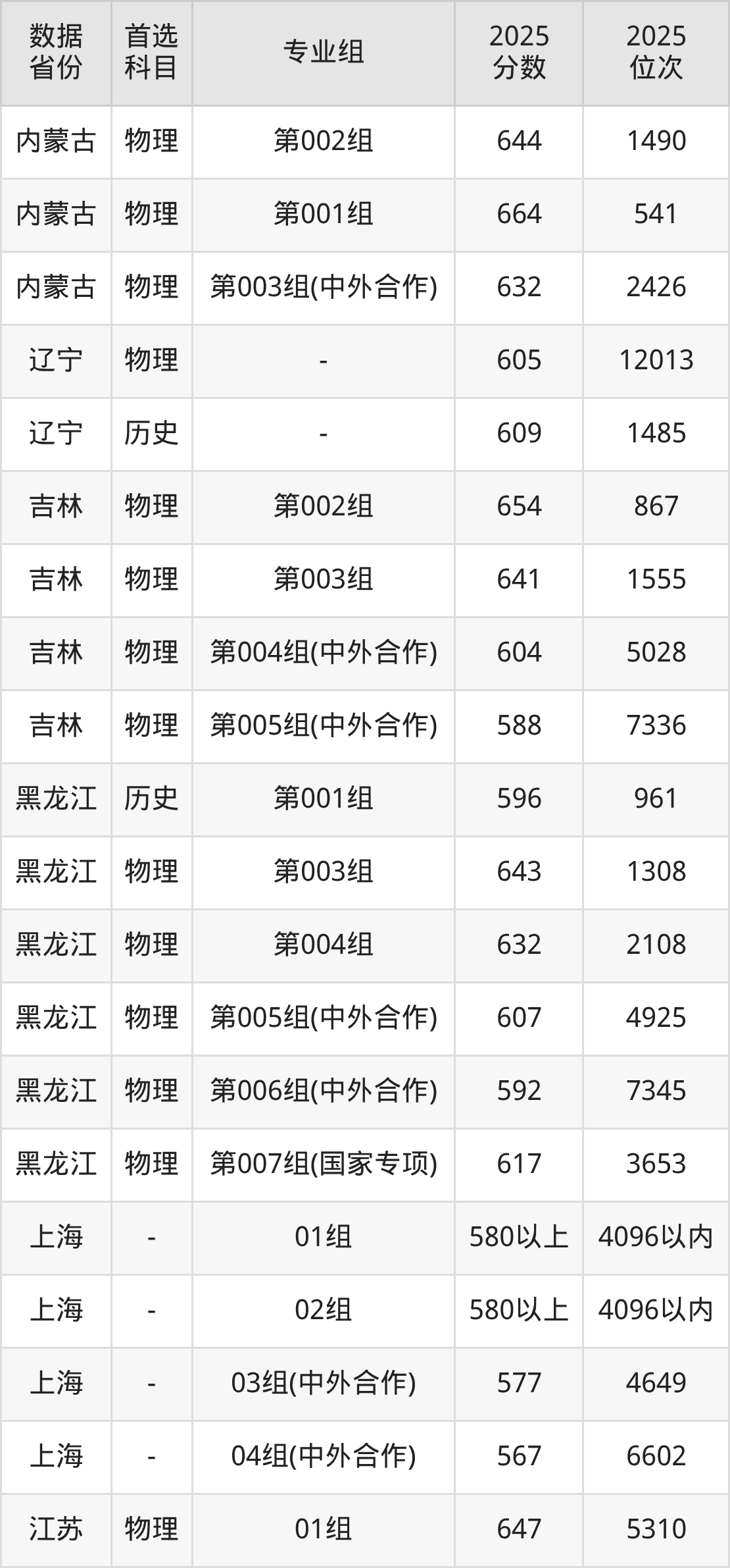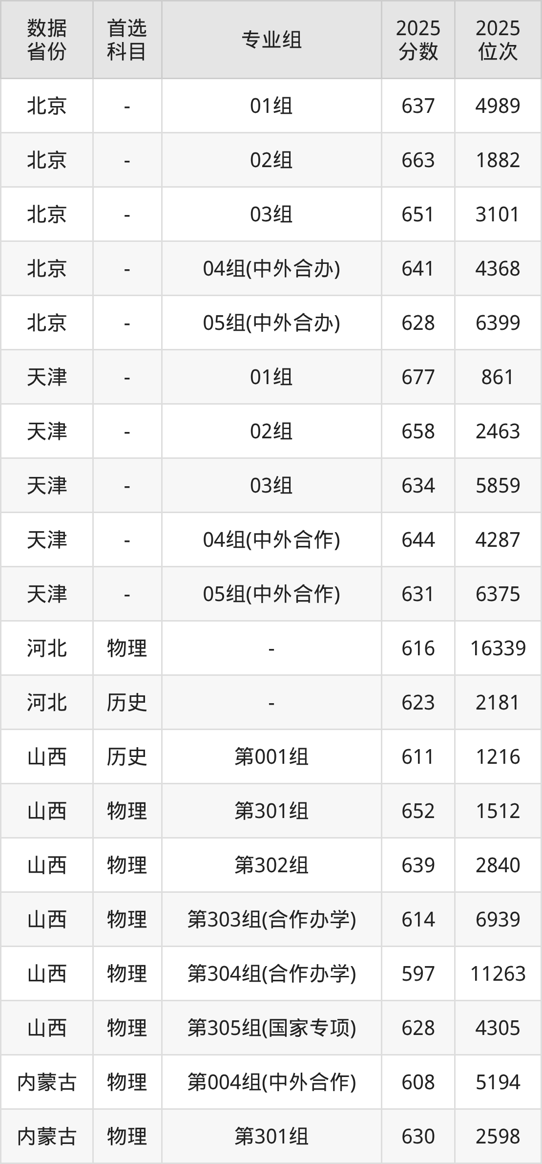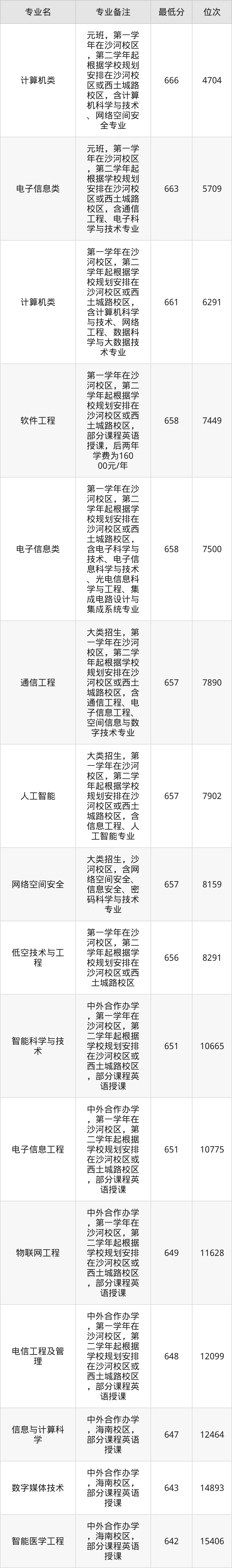 下面是北京邮电大学各省最低分汇总,各专业组录取分数线可参考下方图片: