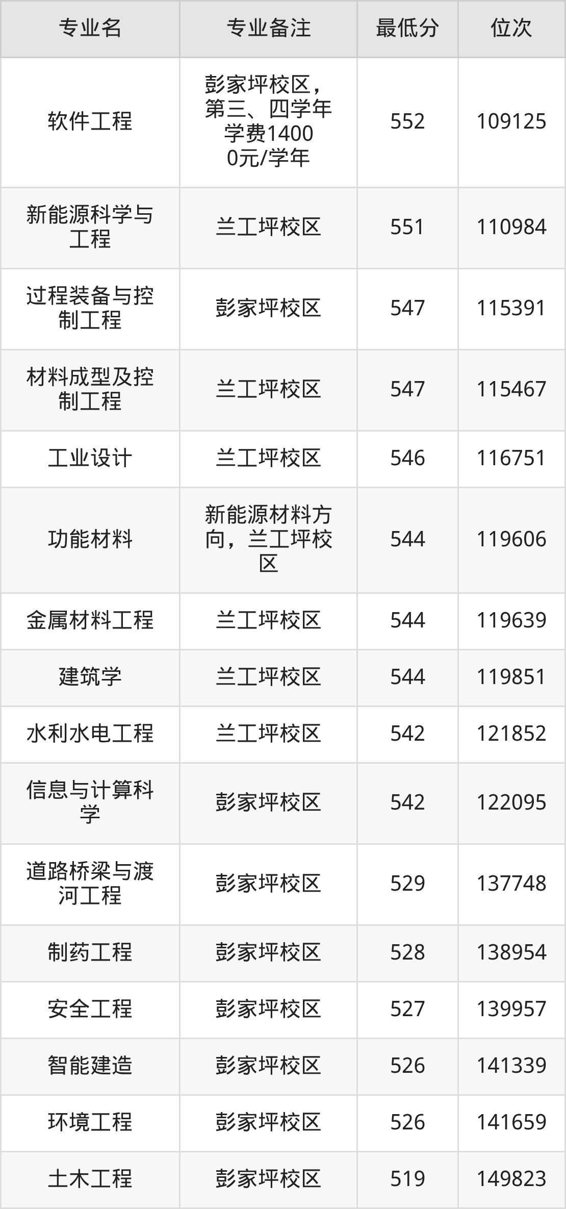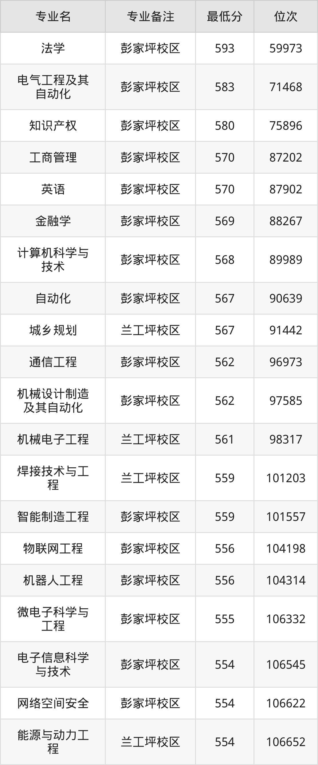 2、电气工程及其自动化:583分、位次71468名;