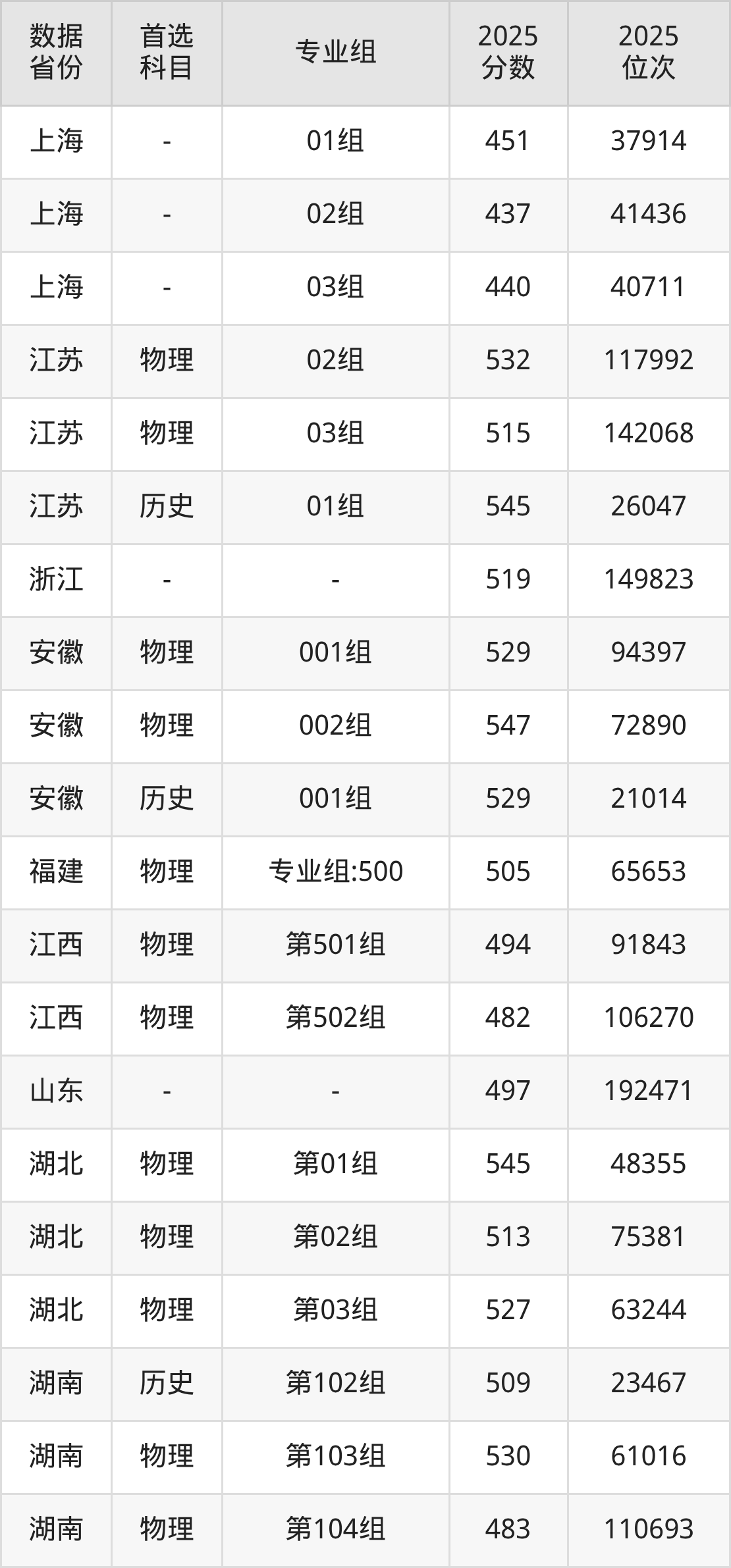 | 物理 | 通信工程 | 地方专项计划 | 15 |