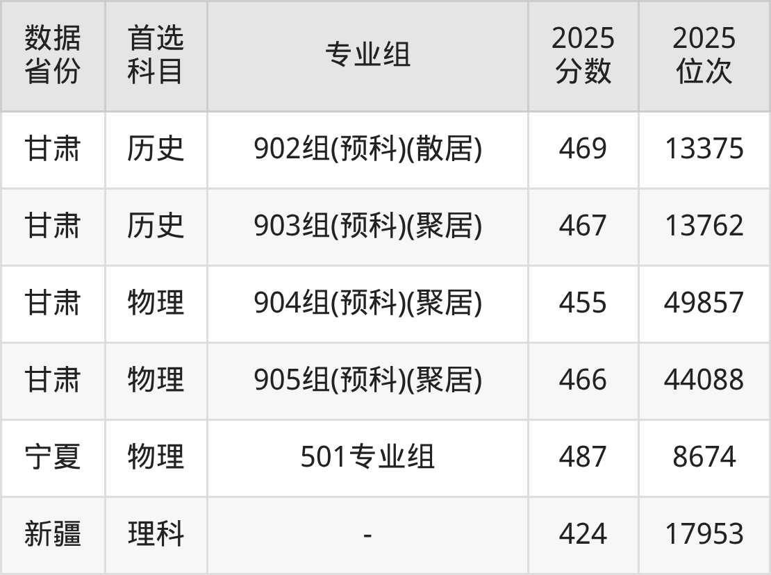 | 物理 | 计算机科学与 技术 | 预科(只招收 聚居少数民族 考生) | 2 |