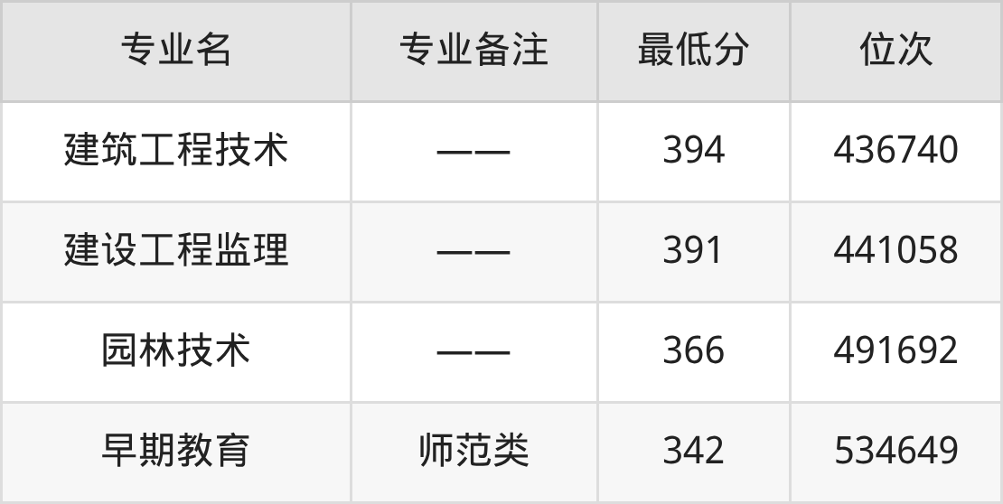 二、汉中职业技术学院各专业最低分
