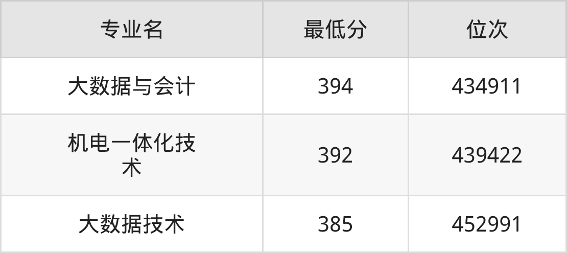 2、机电一体化技术:392分、位次439422名;