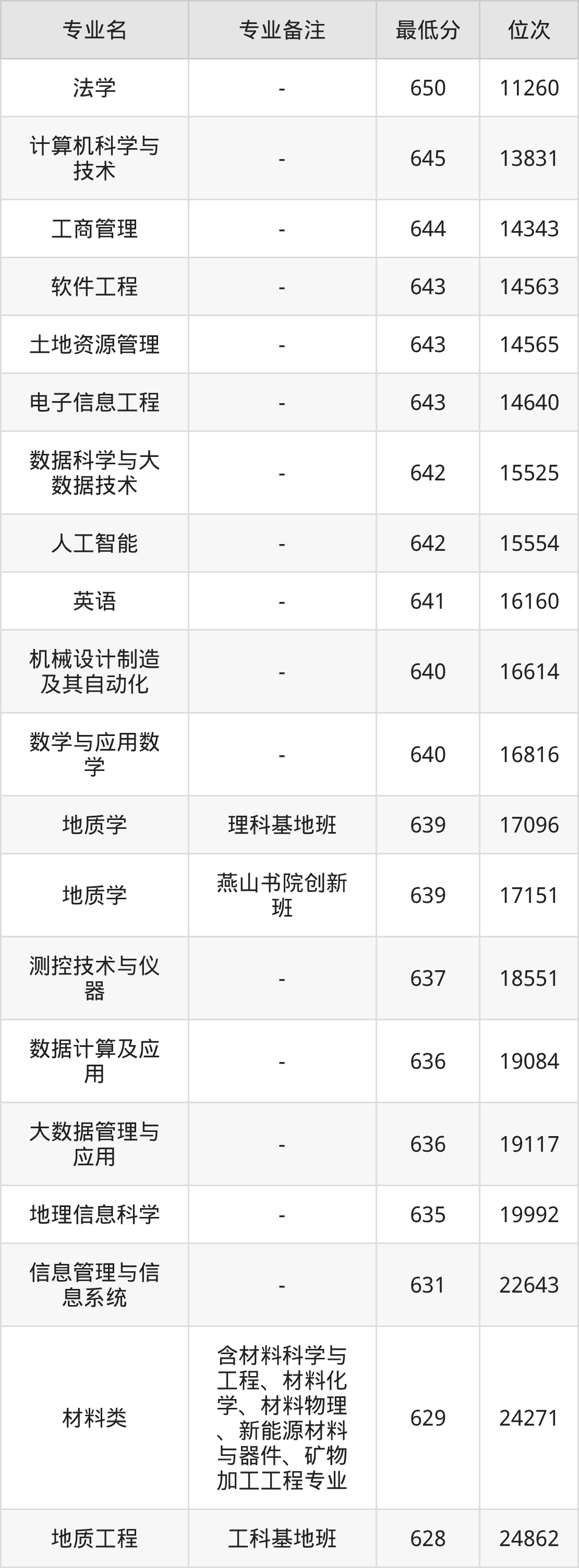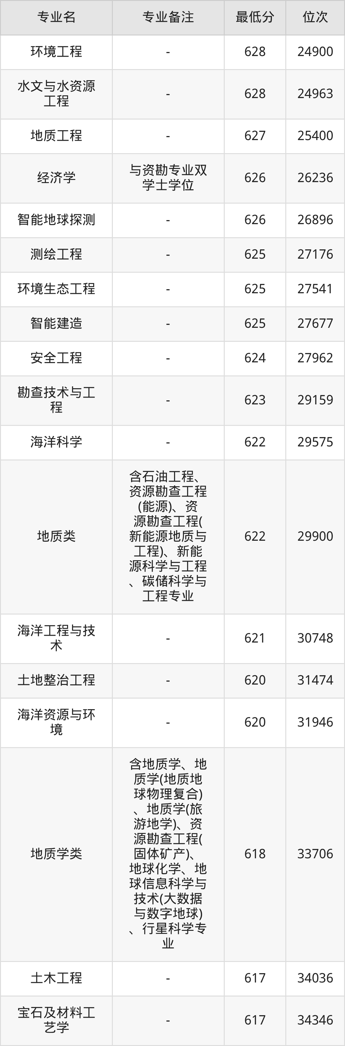 下面是中国地质大学(北京)各省最低分汇总,各专业组录取分数线可参考下方图片:
