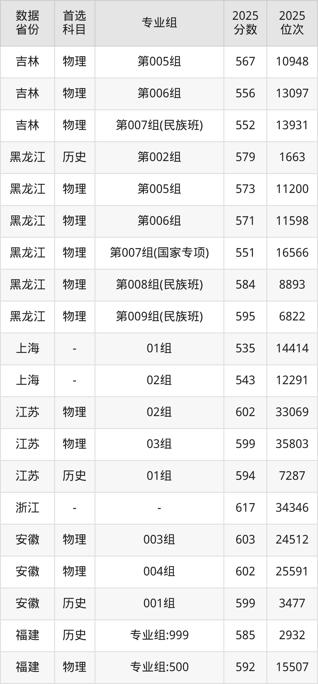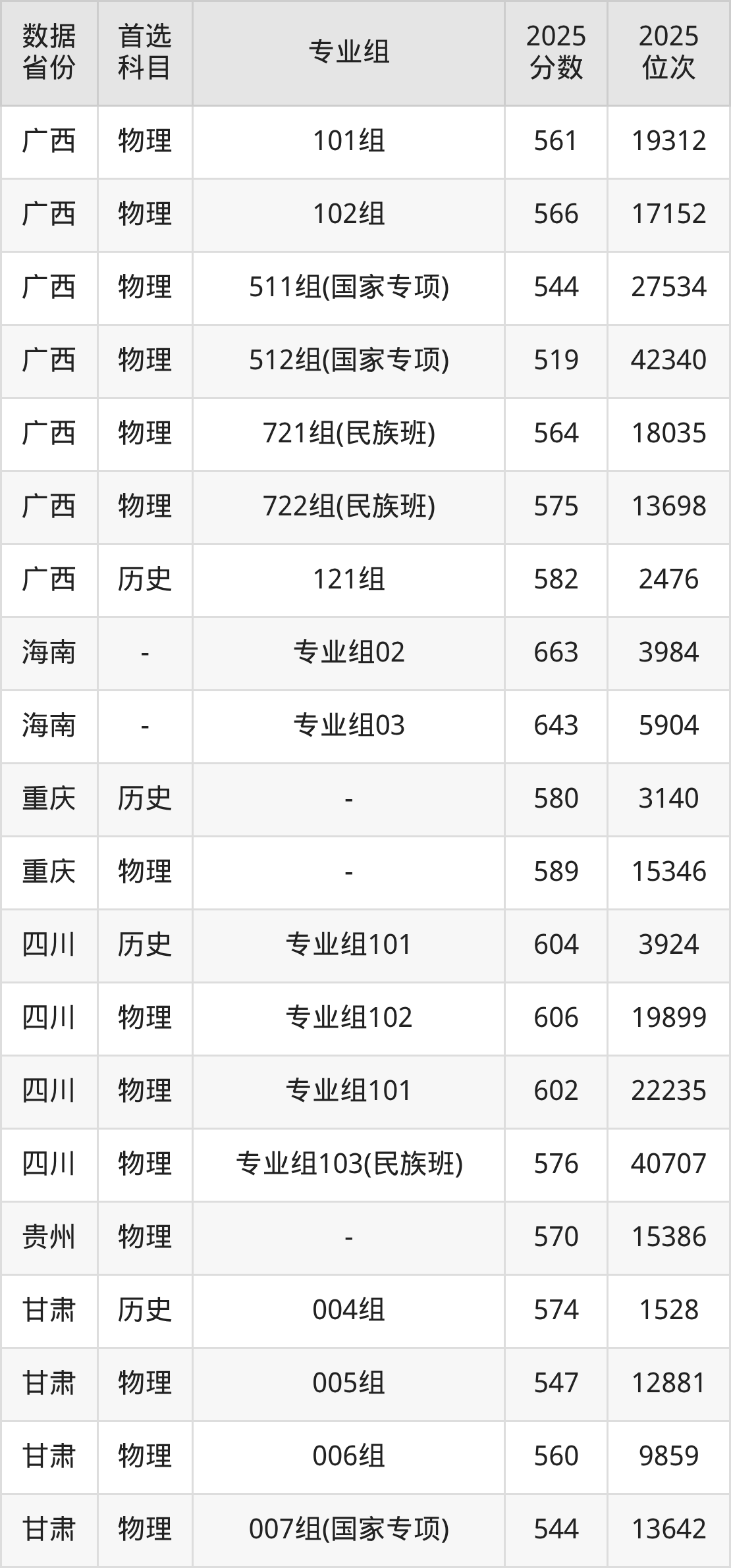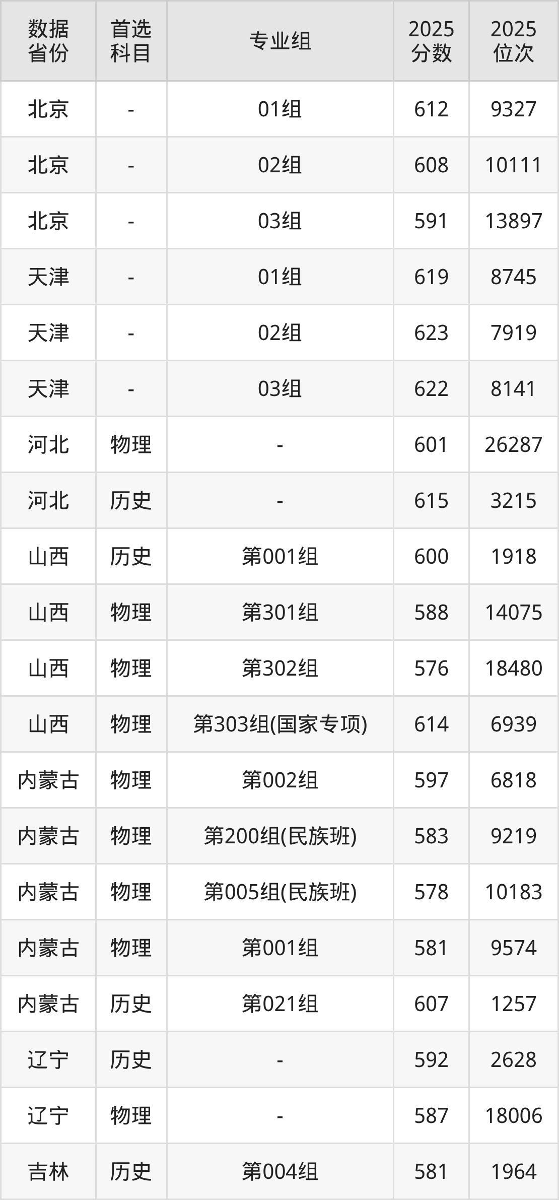 2025年中国地质大学(北京)全国录取分数线最低是493分,最高是663分,平均分在581分左右。在多数地区录取最低分均超过520分。低于520分能上的地区只有广西、新疆和宁夏,高于平均值较多的是海南、天津、浙江和河北等地,均有专业组最低分在615分及以上。