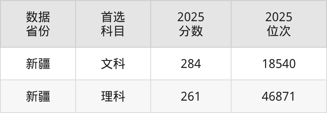 新疆:文科284分、理科261分。