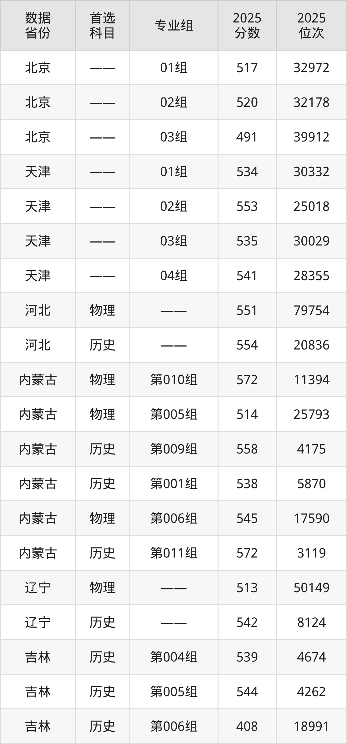 河北:物理组551分、历史组554分;
