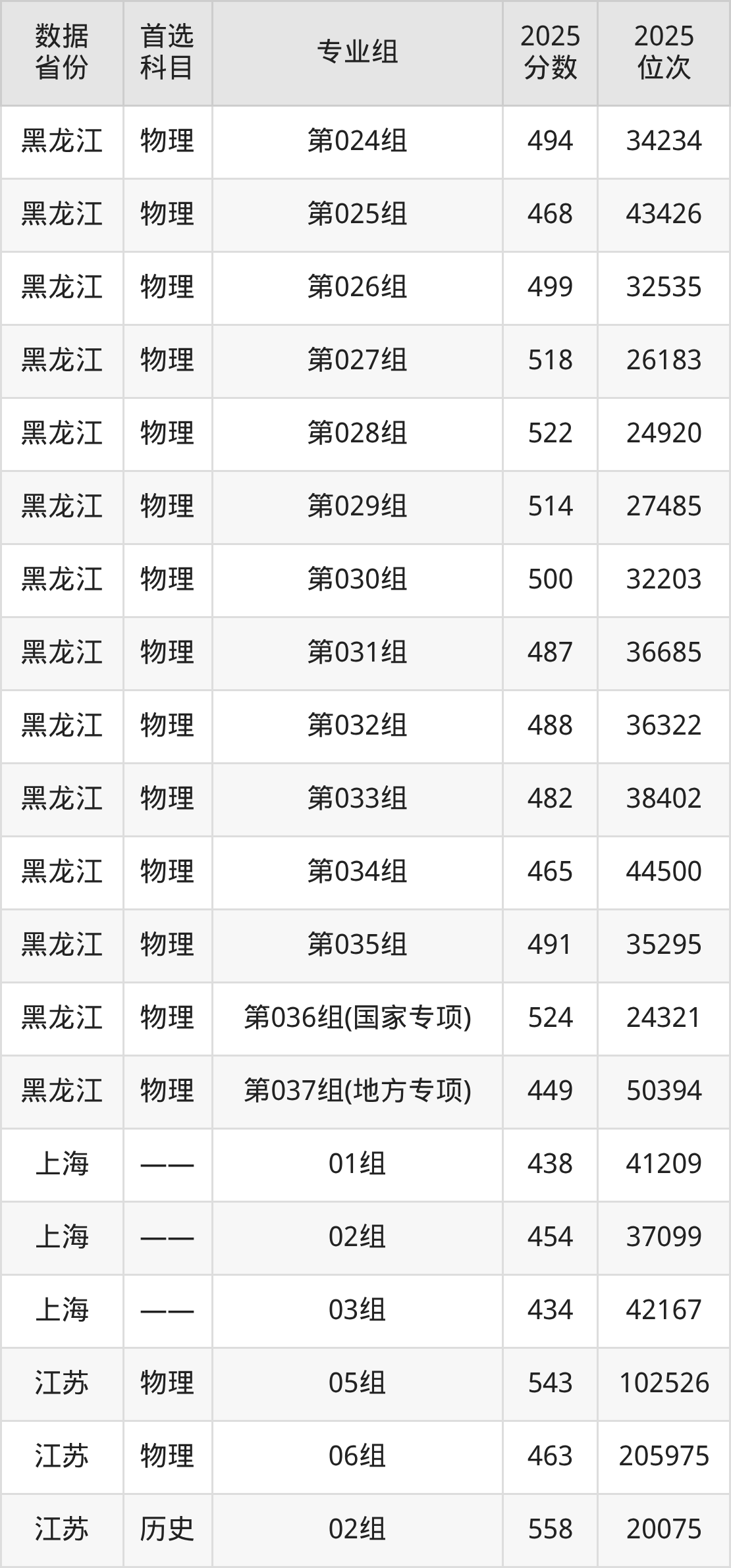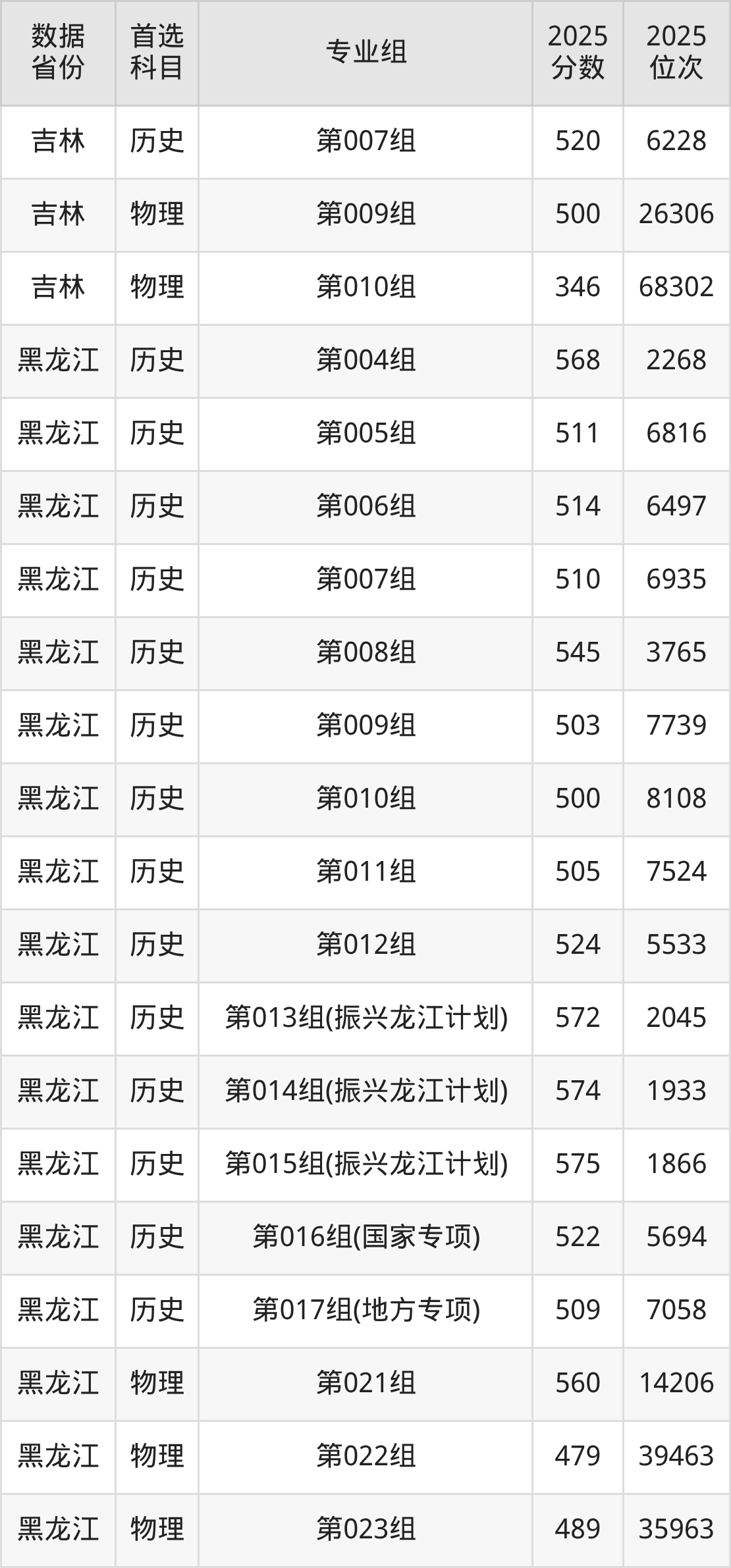 下面是黑龙江大学各省最低分汇总,各专业组录取分数线可参考下方图片: