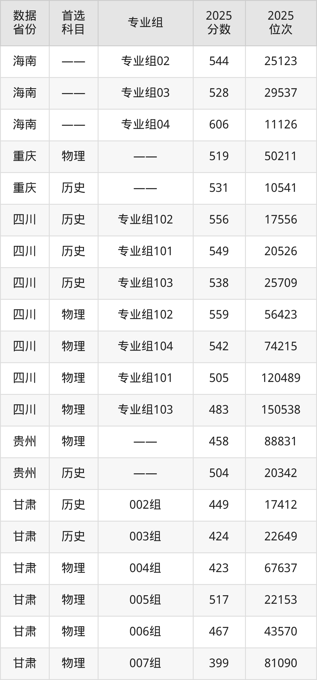 四川:历史组538分、物理组483分;