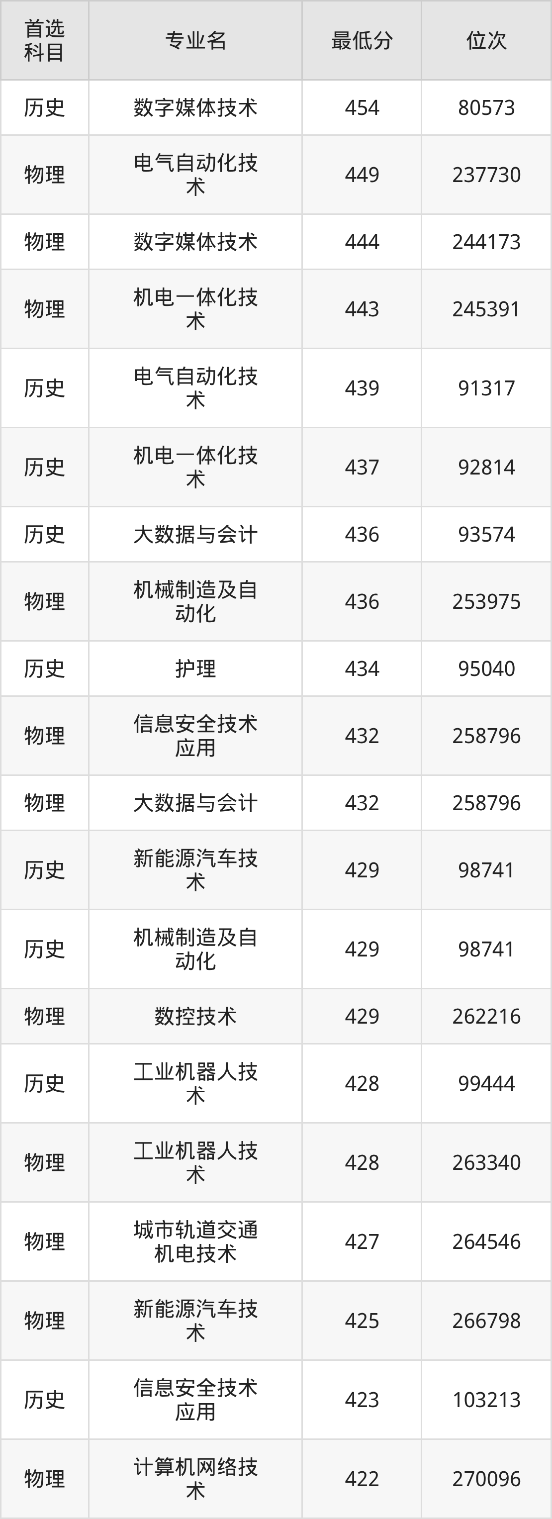 2、电气自动化技术:449分(物理类)、位次237730名;