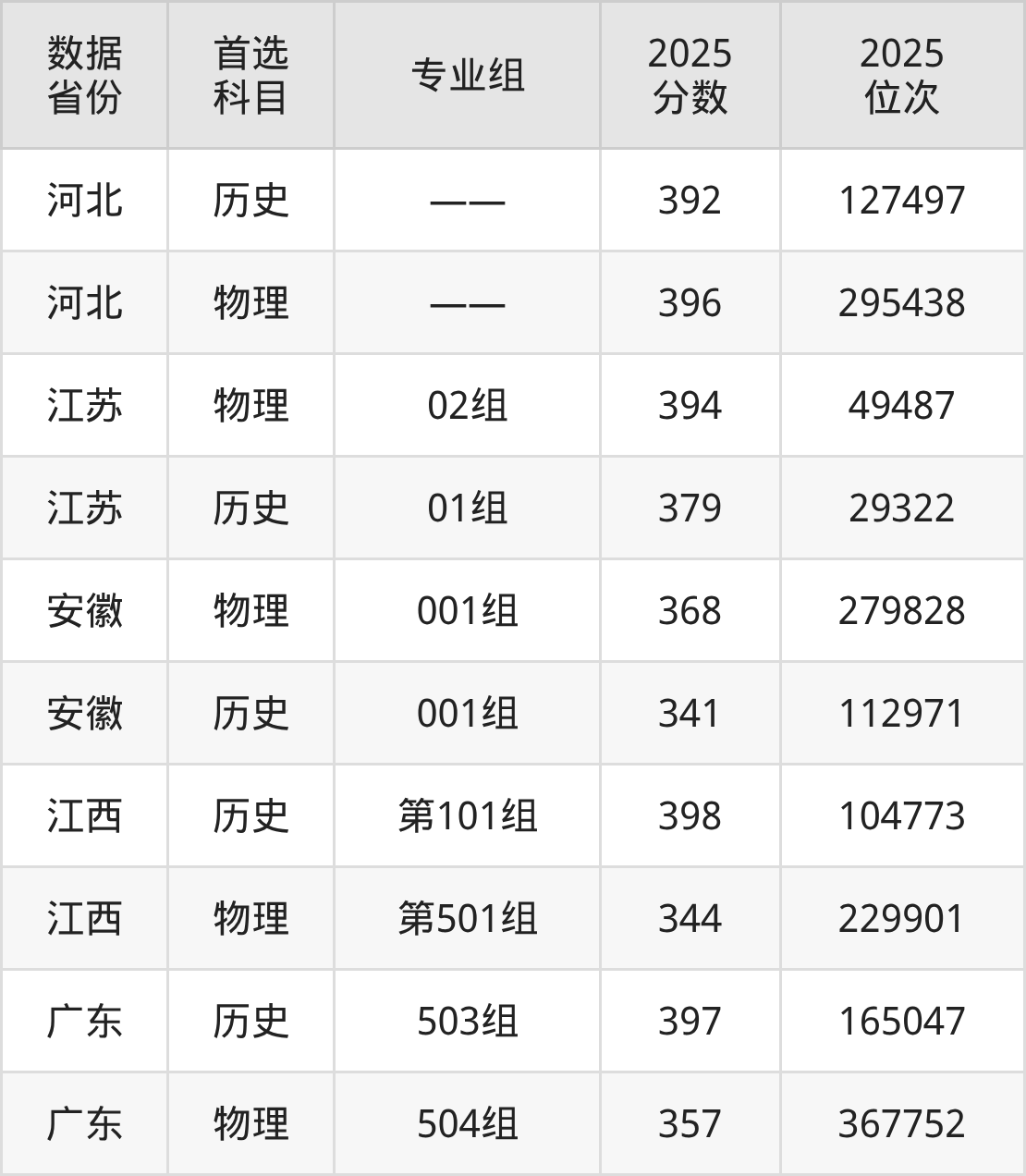 2025年安徽冶金科技职业学院全国录取分数线最低是341分,最高是398分,平均分在377分左右。在多数地区录取最低分均超过360分。低于360分能上的地区只有广东、江西和安徽,高于平均值较多的是江西、广东、河北和江苏等地,均有专业组最低分在394分及以上。