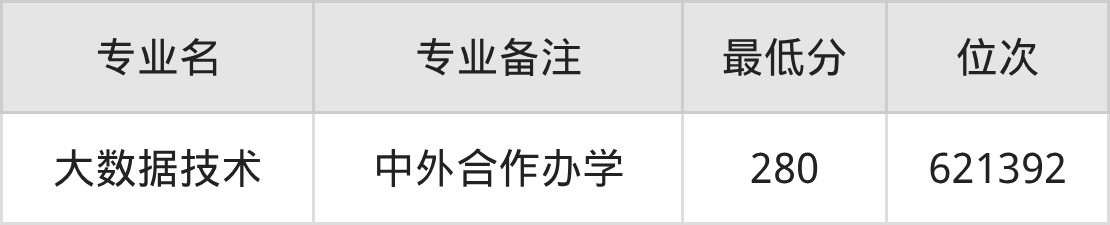 2025年贵州水利水电职业技术学院招生专业共计1个,其中录取分数线最低的专业是大数据技术(中外合作办学),2025年最低分是280分,位次排名是621392名。