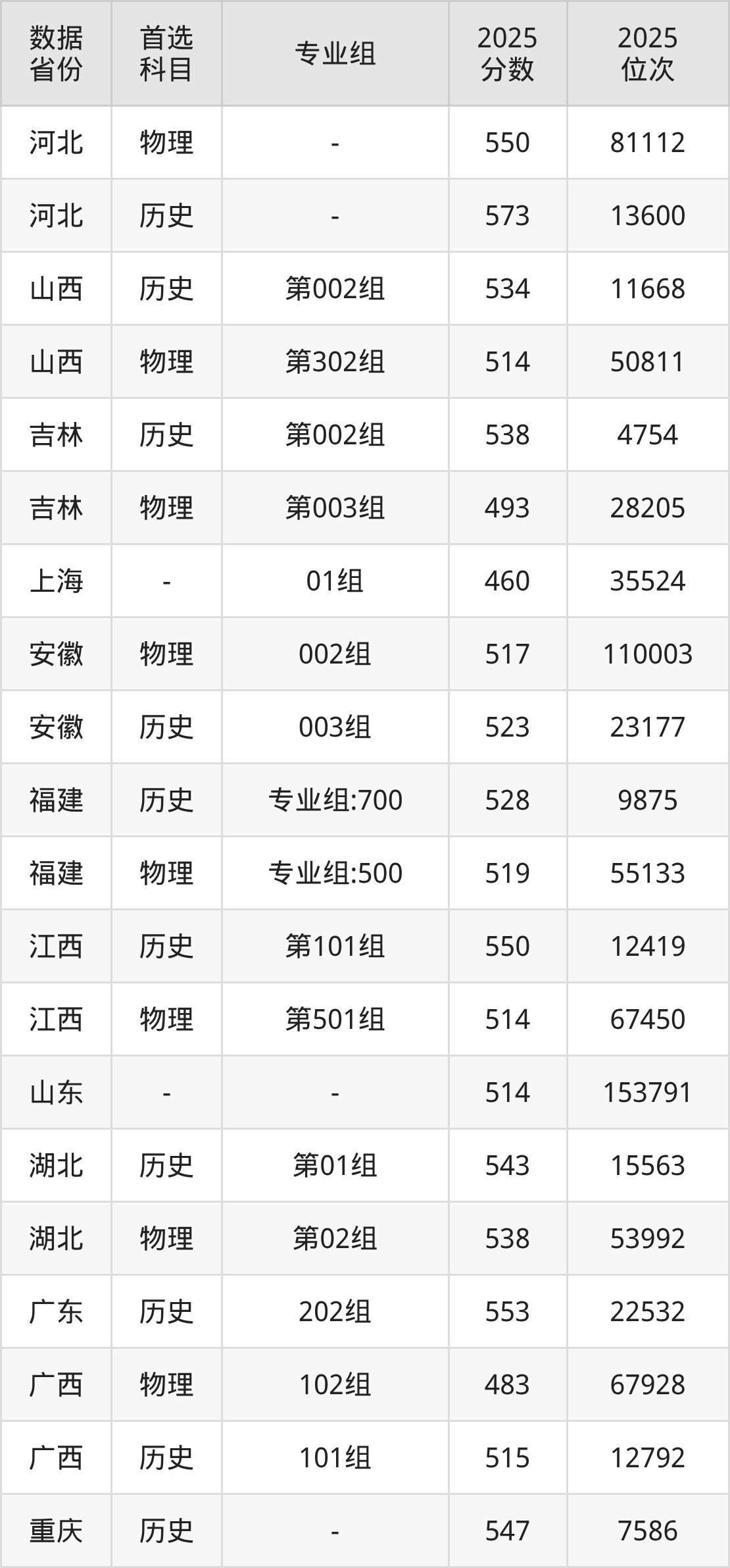 2025年云南警官学院全国录取分数线最低是460分,最高是573分,平均分在530分左右。在多数地区录取最低分均超过490分。低于490分能上的地区只有广西和上海,高于平均值较多的是河北、四川、广东和重庆等地,均有专业组最低分在553分及以上。