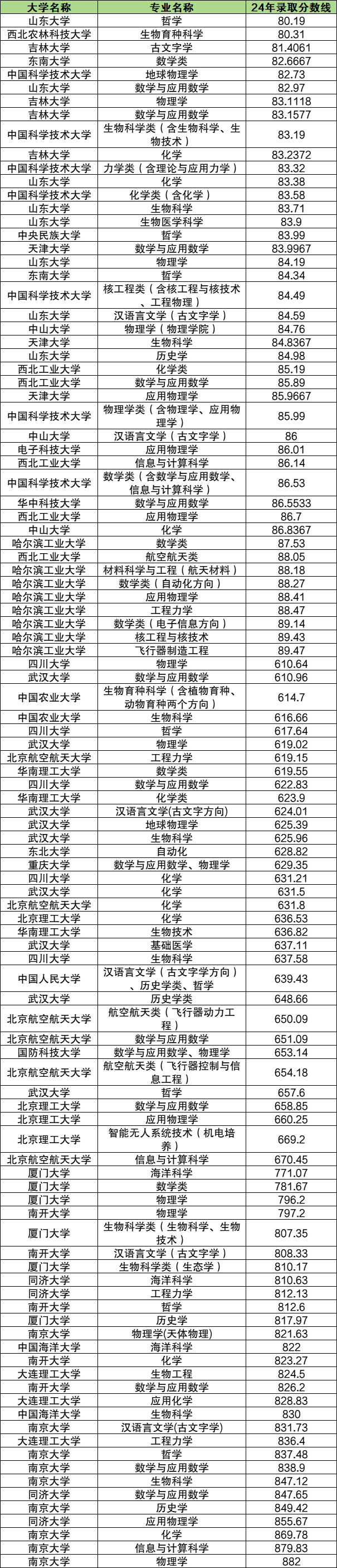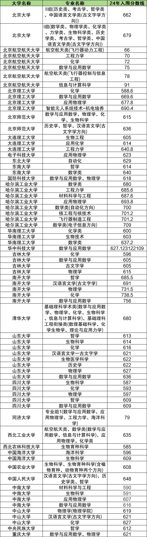 注:大部分强基高校招生入围分以高考成绩为主,录取以综合成绩为主,下面附上山东省高考各校2024年强基入围分数线和录取分数线,帮助大家了解它们的招生分数门槛(部分院校未公布分数线,这里不做统计)。