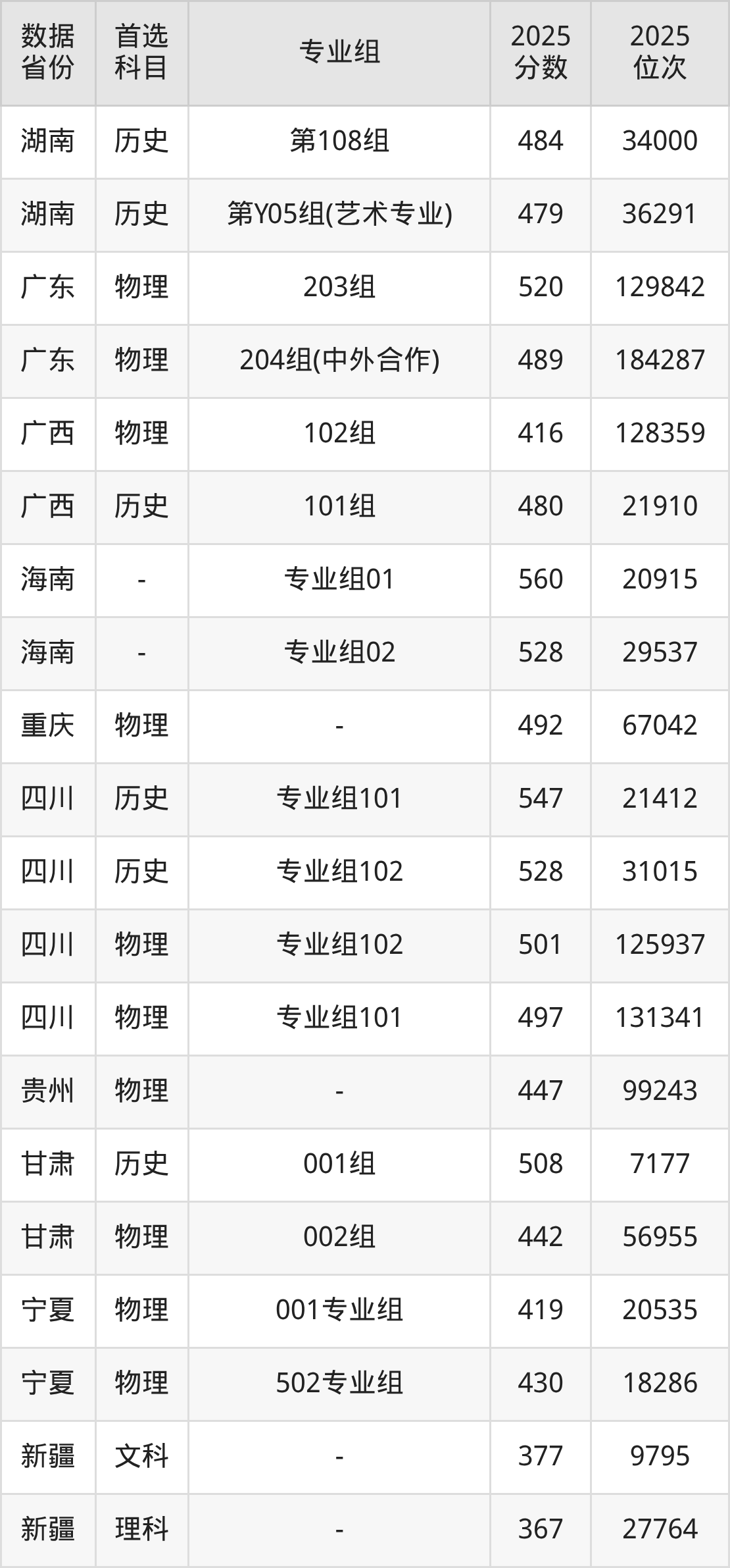 2025年信阳师范大学全国录取分数线最低是367分,最高是560分,平均分在495分左右。在多数地区录取最低分均超过410分。低于410分能上的地区只有吉林和新疆,高于平均值较多的是河北、江苏、江西和湖北等地,均有专业组最低分在529分及以上。