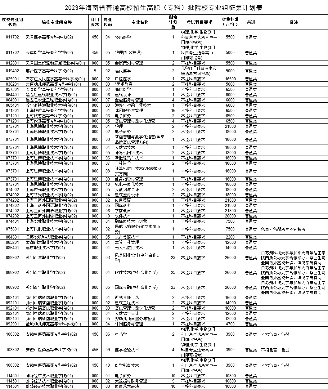 2023年海南省普通高校招生高职(专科)批院校专业组征集计划表(可点击附件查看)