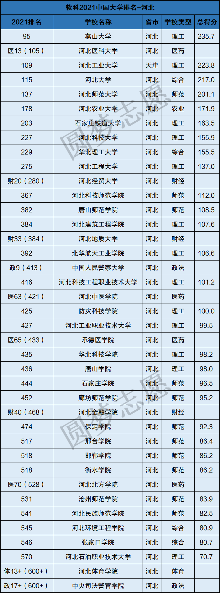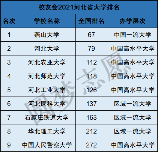 总结:以上就是小编总结的2021年河北所有大学排名一览表以及河北一本大学排名名单,希望能对各位读者有所帮助,也祝愿各位考生都能考上自己心仪的大学和专业。