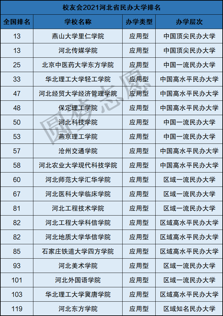 校友会2021年公布的民办大学排名中河北省共有20所民办大学上榜,数量不算少。