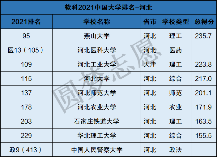 软科2021年最新公布的中国大学排名中,河北省共有39所高校上榜(河北工业大学地处天津,归属河北):