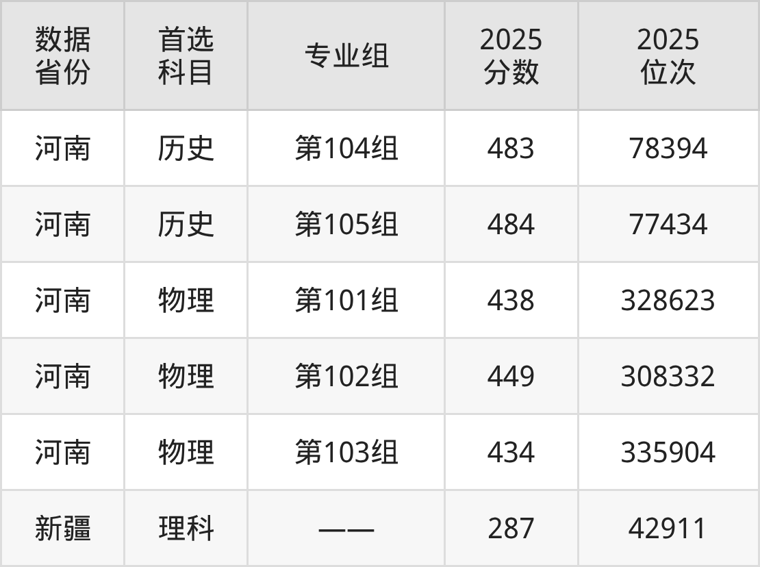 2025年黄河交通学院全国录取分数线是287分到484分之间,其中在河南省录取最低分:历史组483分、物理组434分。参考新疆招录数据,各专业分数线是:机械设计制造及其自动化287分(理科)等。