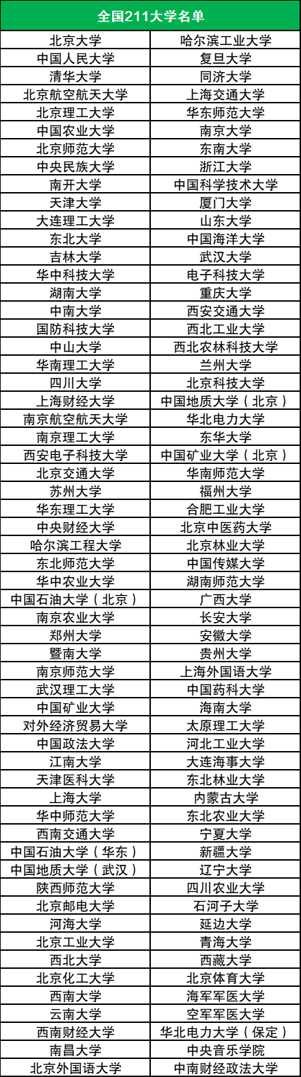 下面是全国116所211大学名单一览表: