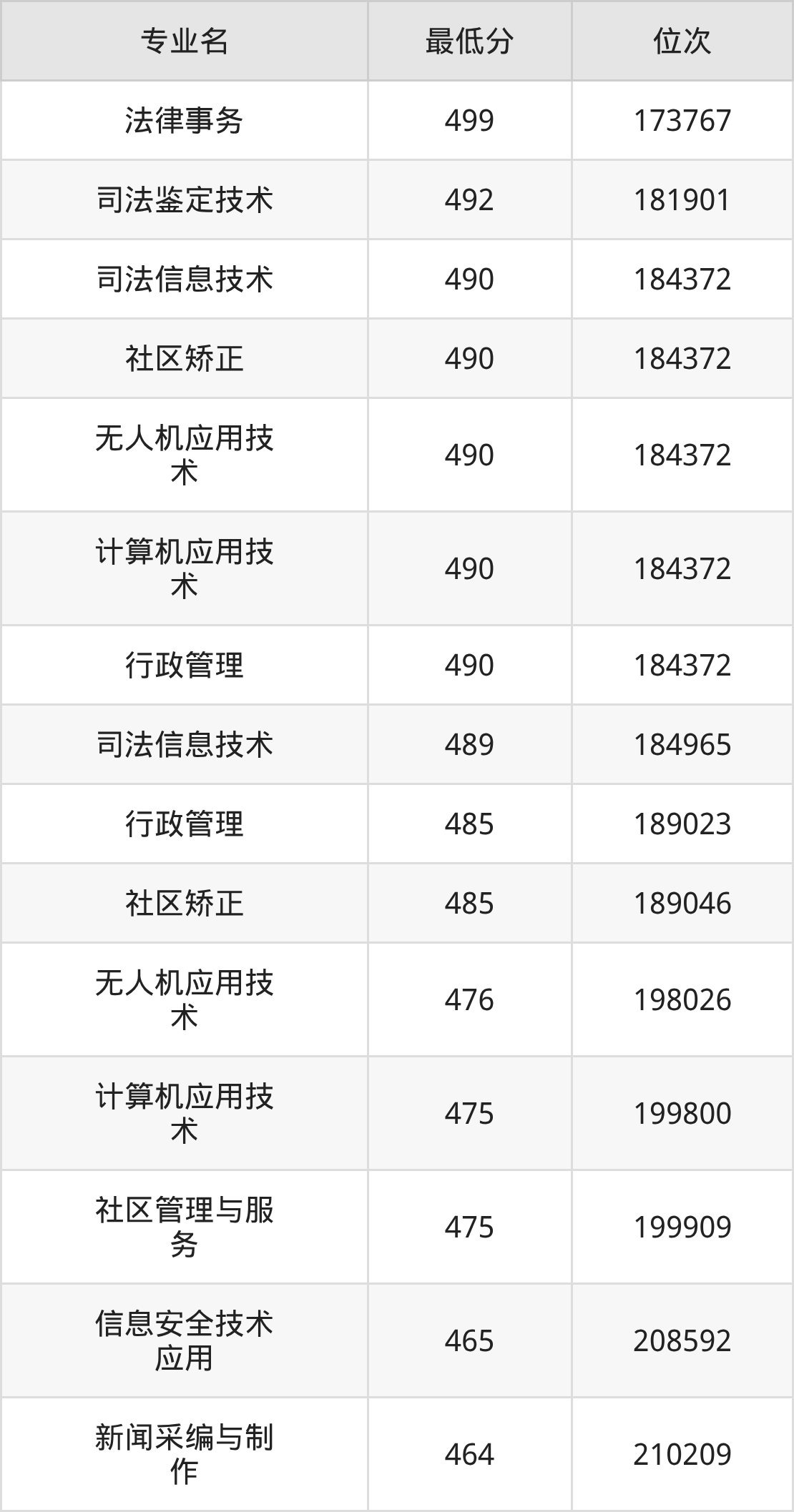 下面是江西司法警官职业学院各省最低分汇总,各专业组录取分数线可参考下方图片: