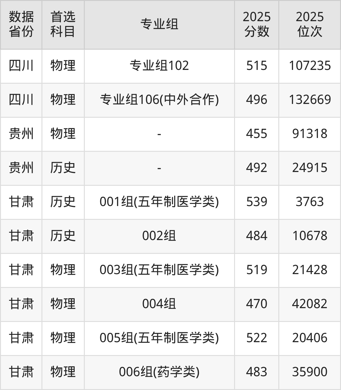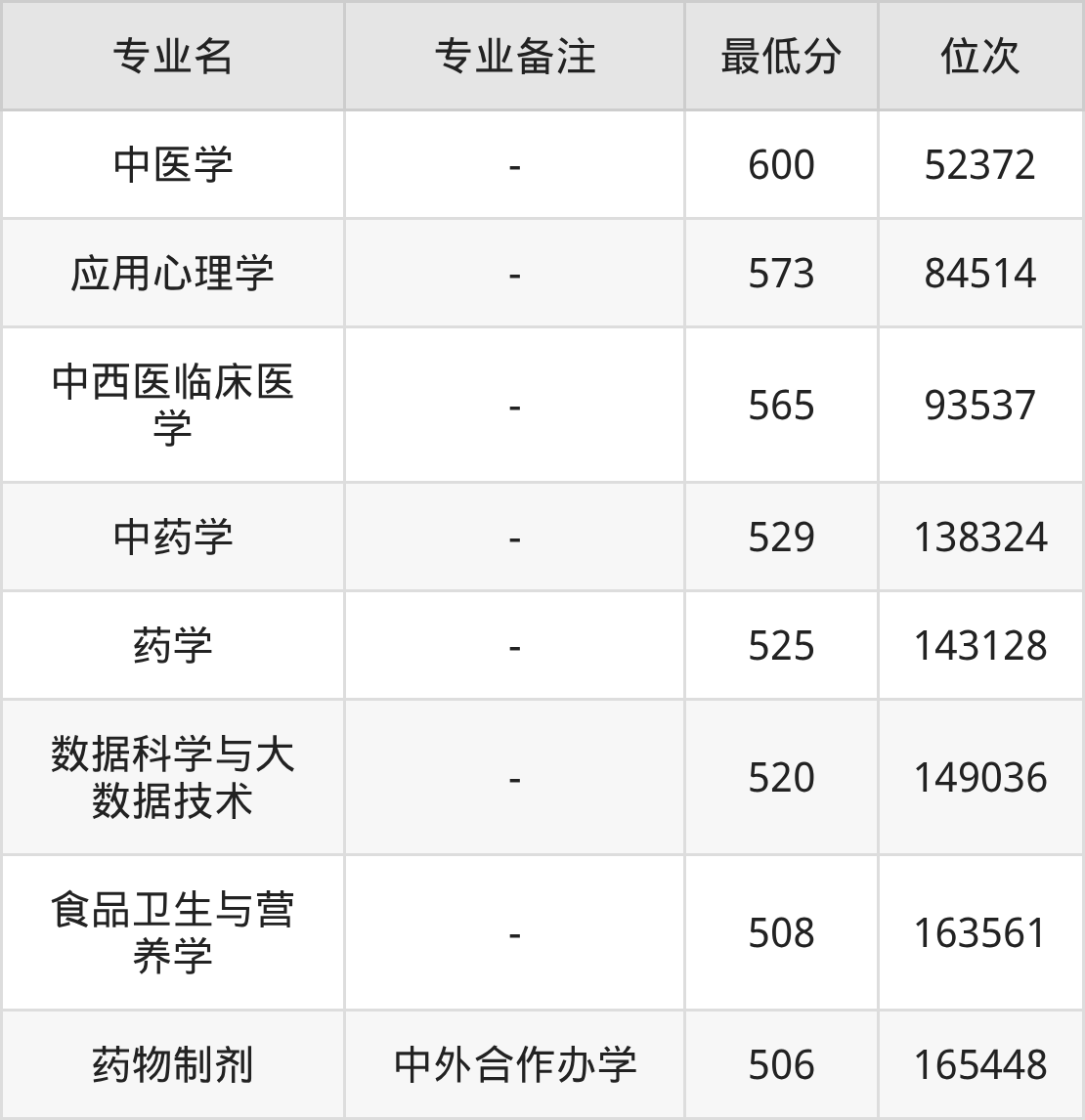 下面是贵州中医药大学各省最低分汇总,各专业组录取分数线可参考下方图片: