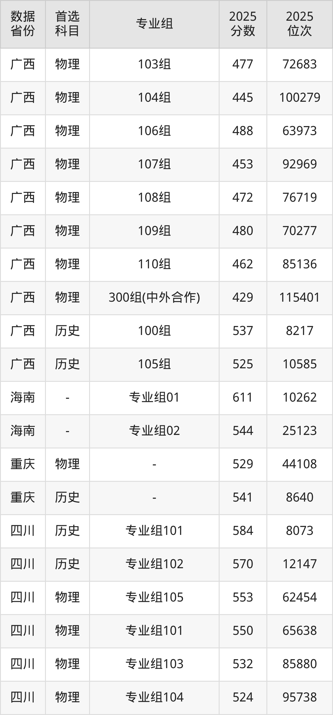 2025年贵州中医药大学全国录取分数线最低是429分,最高是611分,平均分在517分左右。在多数地区录取最低分均超过460分。低于460分能上的地区只有江西、辽宁和贵州和上海和广西,高于平均值较多的是内蒙古、四川、江苏和湖北等地,均有专业组最低分在558分及以上。
