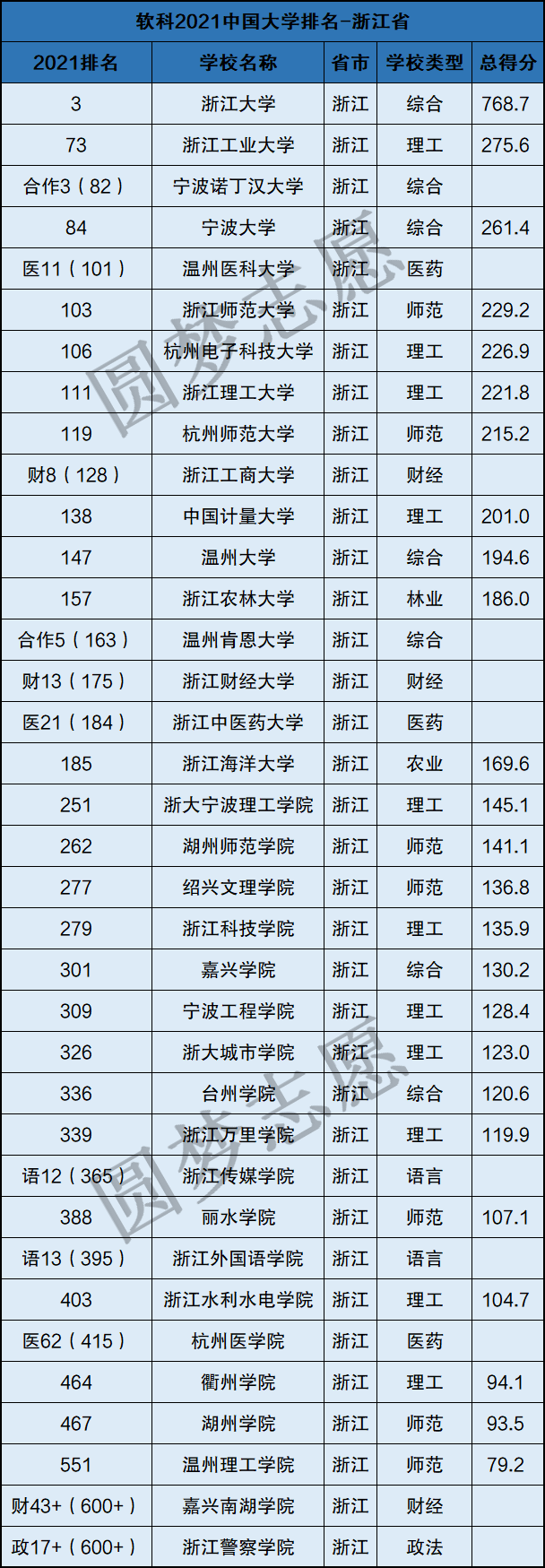 以下是软科2021年新发布的中国大学排名,小编摘取了浙江省的所有高校供大家查看: