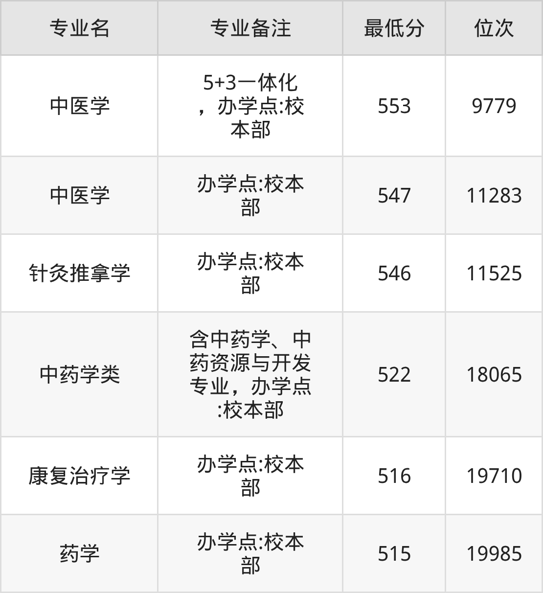 4、中药学类(含中药学、中药资源与开发专业,办学点:校本部):522分、位次18065名;