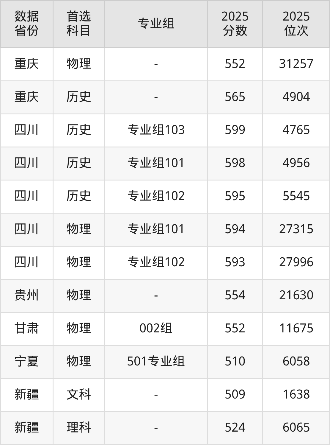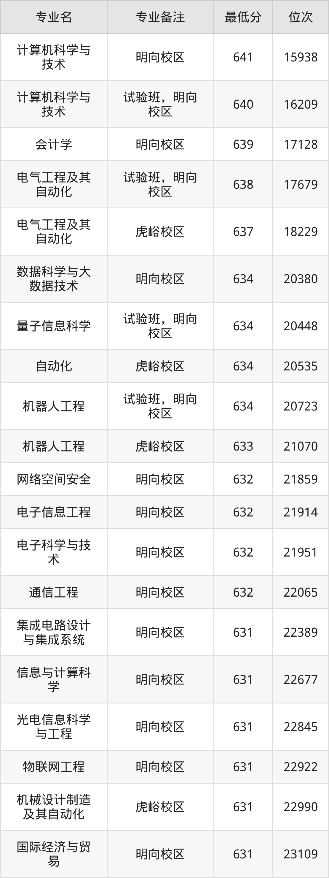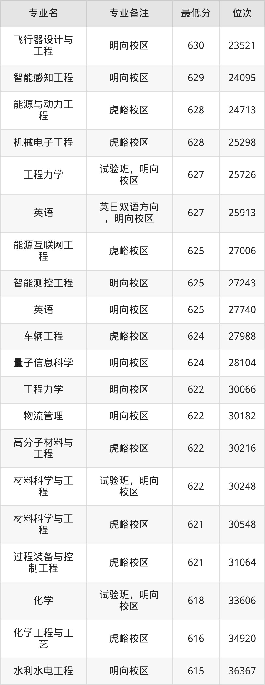 2、计算机科学与技术(试验班):640分、位次16209名;