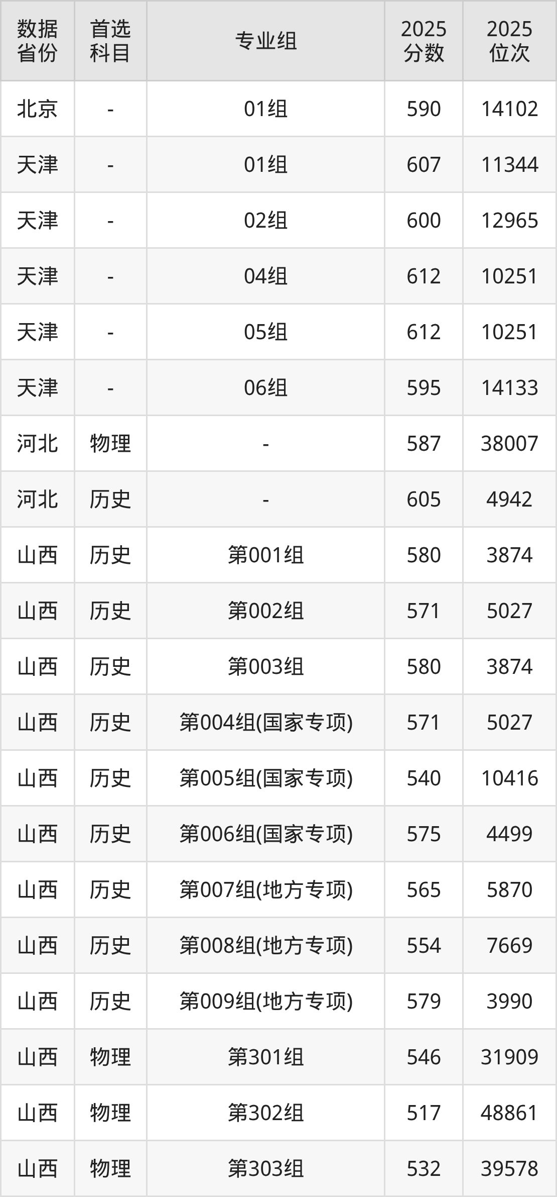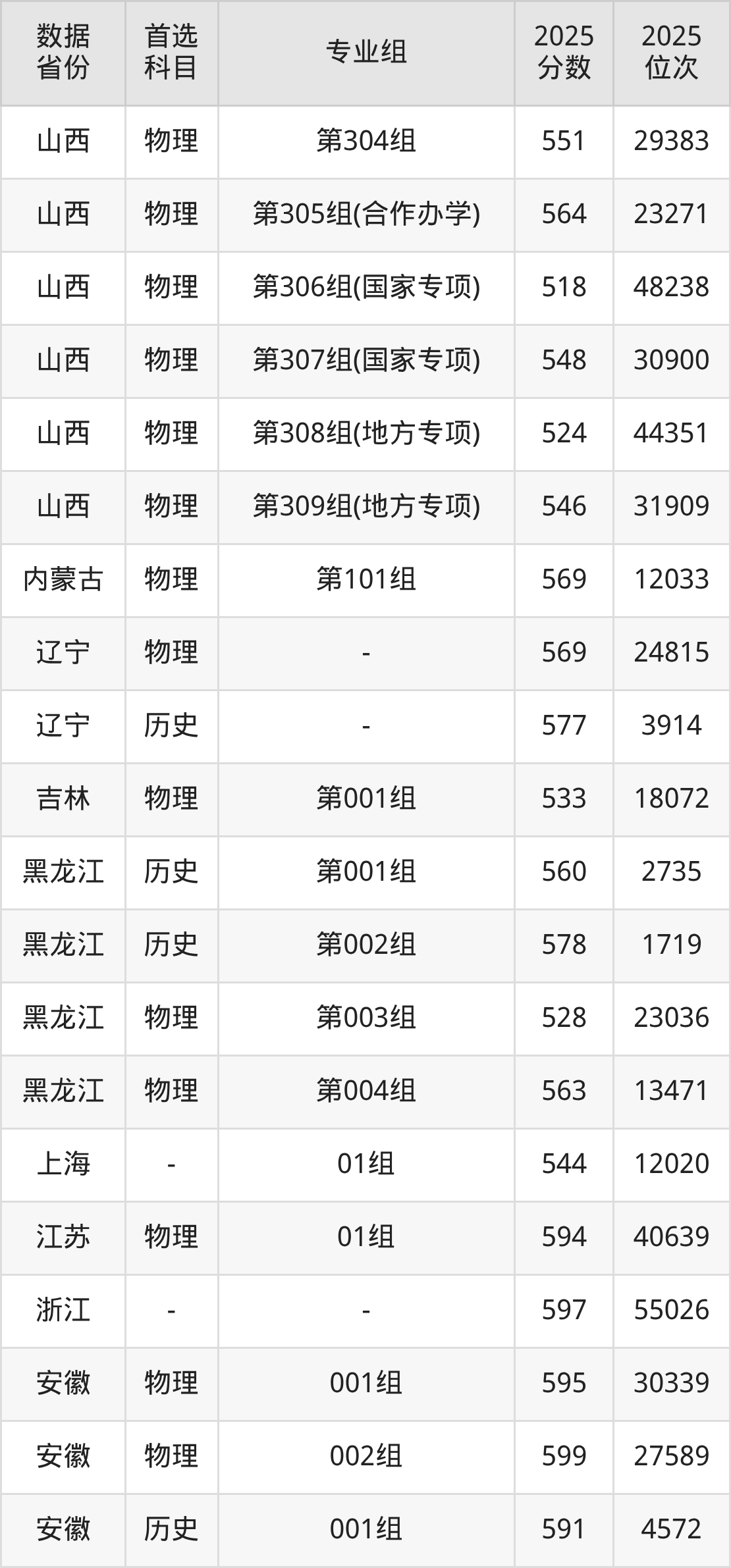 下面是太原理工大学各省最低分汇总,各专业组录取分数线可参考下方图片: