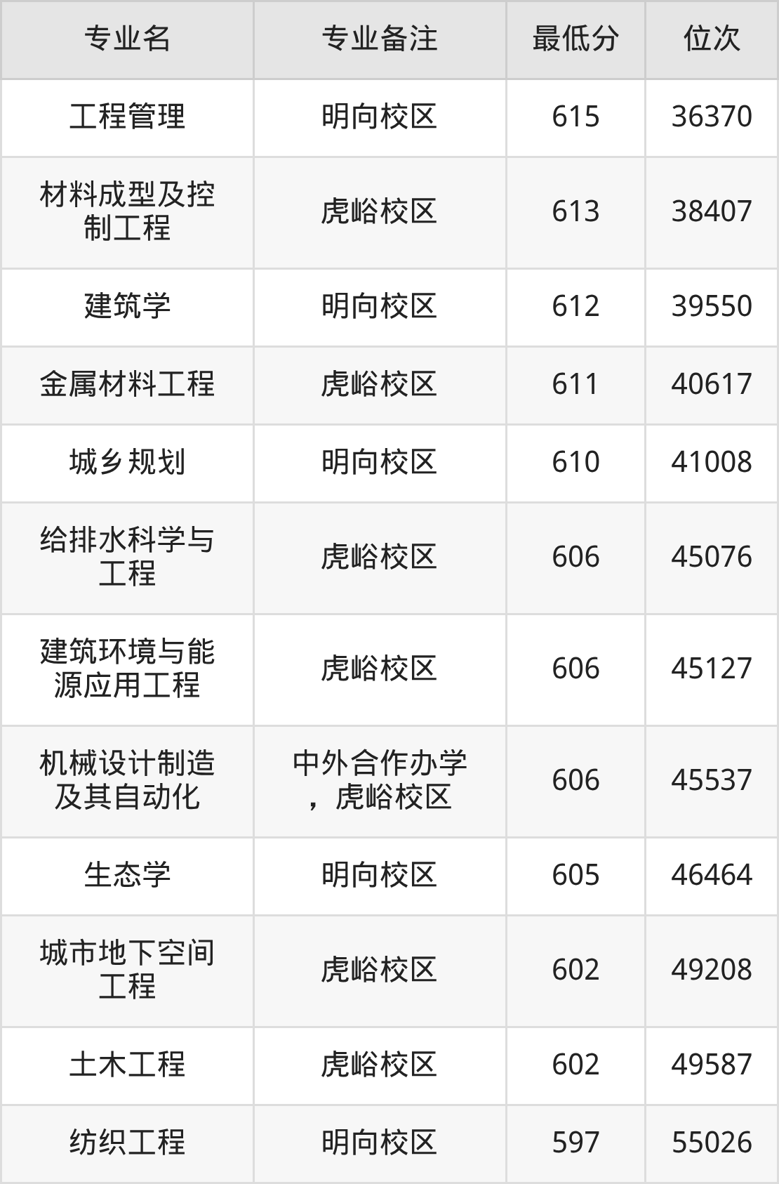 | 物理 | 纺织工程 | 办学地点明向 校区 | 16 |