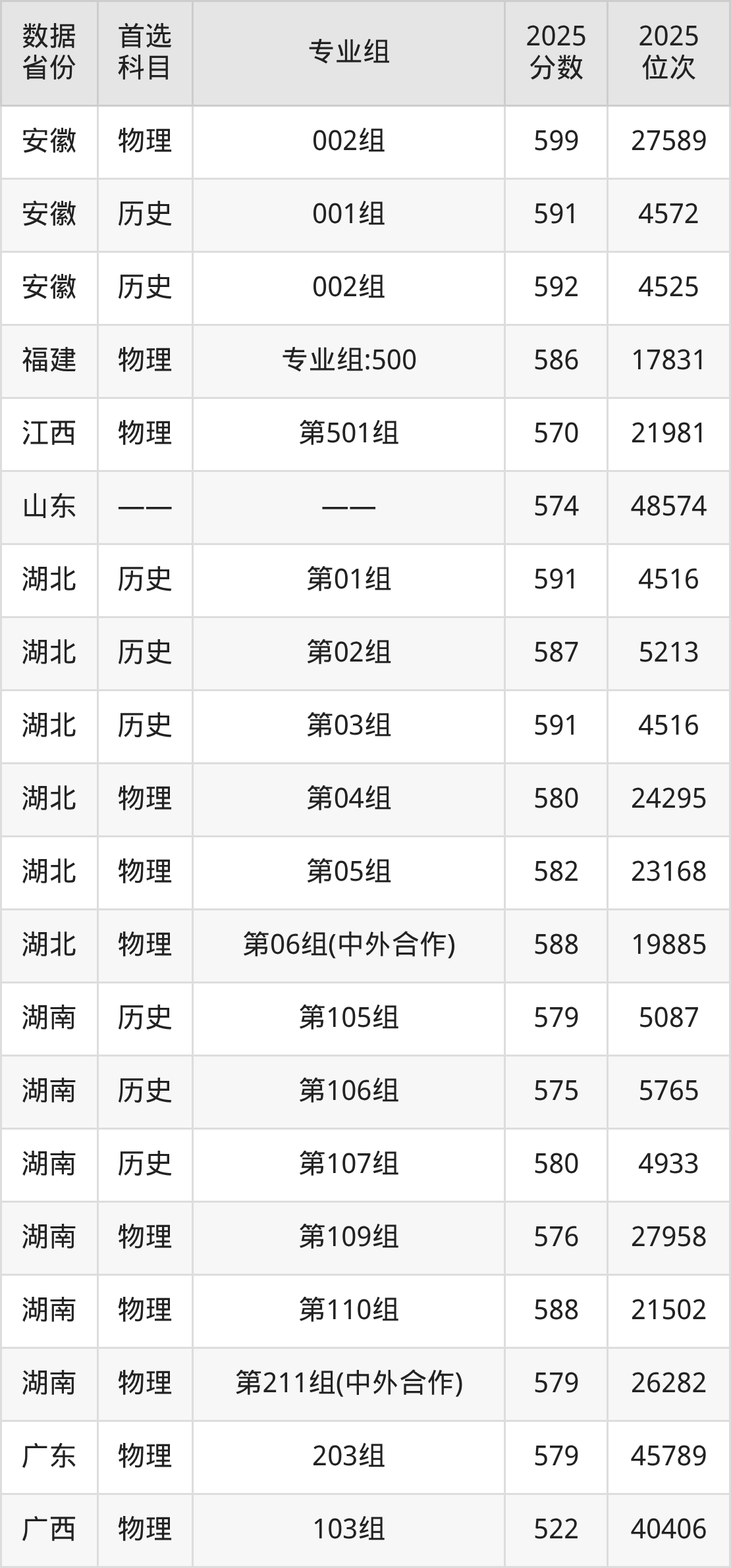 湖南:历史组575分、物理组576分;